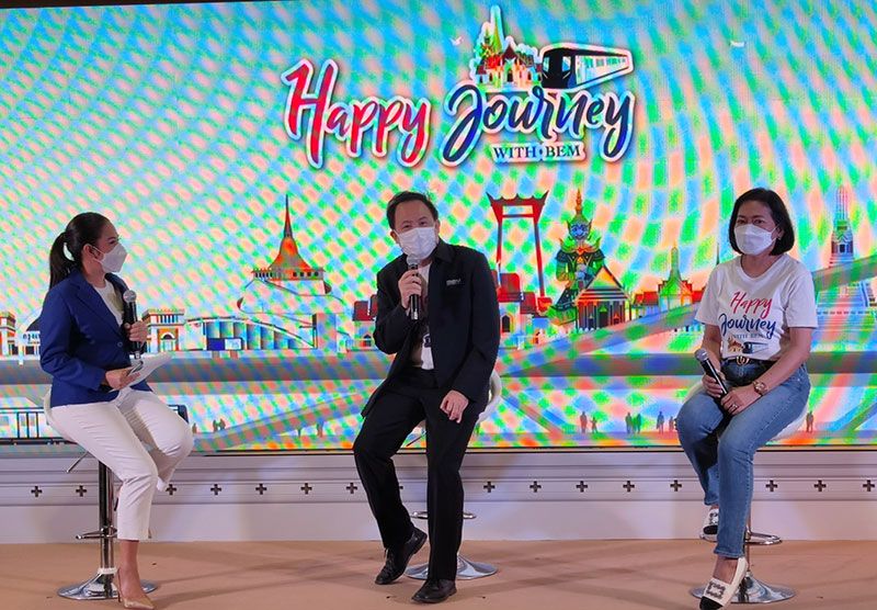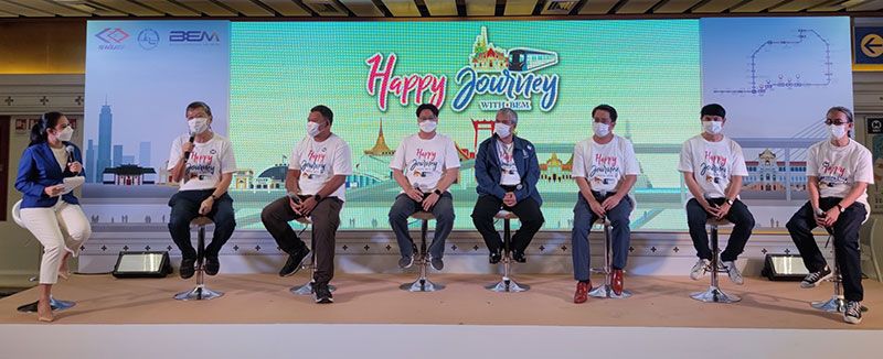 การรถไฟฟ้าขนส่งมวลชนแห่งประเทศไทย (รฟม.), การท่องเที่ยวแห่งประเทศไทย (ททท.) และ บริษัท ทางด่วนและรถไฟฟ้ากรุงเทพ จำกัด (มหาชน) หรือ BEM ร่วมส่งเสริมการท่องเที่ยวและการเดินทางยุคนิว นอร์มอลจัดโครงการ “Happy Journey withBEM” ตอบแทนผู้ใช้บริการรถไฟฟ้า MRT สายสีน้ำเงินด้วย 5 ทริปสุดเอ็กซ์คลูซีฟฟรีตลอดปี 2565 ชวน “เที่ยว-แวะ-แชะ-ชิม” ออกเดินทางเก็บเกี่ยวทุกมิติความสุขเปิดมุมมองใหม่ สัมผัสประสบการณ์ประทับใจกับการท่องเที่ยวเชิงประวัติศาสตร์ ตามเส้นทางรถไฟฟ้า 5 สถานี ได้แก่ สถานีวัดมังกร สนามไชย สามย่าน หัวลำโพงและอิสรภาพ ยกระดับความสุขให้เต็มอิ่มยิ่งขึ้น ด้วย “สเปเชียล ทอล์ก” และ“เวิร์กช็อป” โดยวิทยากรชั้นนำ มอบสาระความรู้และความเพลิดเพลินตลอดทริป เสริมความอุ่นใจและความปลอดภัย ด้วยมาตรการป้องกันการแพร่ระบาดของโควิด-19 อย่างเคร่งครัด งานนี้ วิทยาพันธุ์มงคล รองผู้ว่าการ (ปฏิบัติการ)การรถไฟฟ้าขนส่งมวลชนแห่งประเทศไทย (รฟม.), ฐาปนีย์ เกียรติไพบูลย์ รองผู้ว่าการ การท่องเที่ยวแห่งประเทศไทย ด้านตลาดในประเทศ และ ดร.สมบัติ กิจจาลักษณ์ กรรมการผู้จัดการ บริษัททางด่วนและรถไฟฟ้ากรุงเทพ จำกัด (มหาชน) หรือ BEM ร่วมแถลงข่าวเปิดตัวโครงการฯ ที่สถานีสนามไชยเมื่อวันที่ 1 มีนาคม 2565
