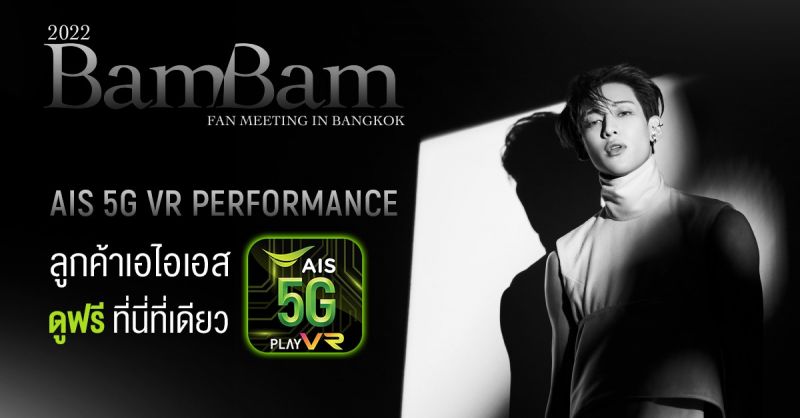 AIS ยังคงตอกย้ำความเป็นผู้นำเครือข่ายด้านดิจิทัลคอนเทนต์พร้อมมอบความบันเทิงครบรสและหลากหลายที่สุดให้ผู้ชม โดยสามารถรับชมคอนเทนต์สุด Exclusive ของ “แบมแบม” และเหล่าไอดอลคนดังในรูปแบบ AR และ VR ได้ผ่านช่องทางแอปพลิเคชัน AIS 5G PLAY VR และ AIS 5G PLAY AR ที่รองรับการใช้งานทั้ง Android และ iOS ให้คุณได้ใกล้ชิดกับศิลปินคนโปรดได้ตลอด ทุกที่ ทุกเวลา