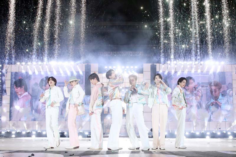 O 7 หนุ่มบอยแบนด์สุดฮอต BTS ระเบิดความมันส์ในคอนเสิร์ตสดๆ ของพวกเขาครั้งแรกในรอบเกือบ 3 ปี Permission to Dance on Stage ที่กรุงโซลเมื่อสุดสัปดาห์ที่ผ่านมา ต้องเว้นระยะห่างตามมาตรการควบคุมโรคไม่ว่าจะเป็นการจำกัดจำนวนผู้ชมเพียง 15,000 คนต่อรอบ ทั้งที่สนามกีฬาจัมซิลสถานที่จัดงานสามารถรองรับผู้ชมได้มากกว่า 60,000 ที่นั่ง นอกจากนี้แฟนเพลงยังโดนห้ามกรี๊ด ห้ามกระโดดโลดเต้น ทำได้เพียงปรบมือด้วยอุปกรณ์มือตบเท่านั้น แต่ก็ห้ามความปังไม่อยู่ เพราะค่าย Big Hit ต้นสังกัด BTS เผยว่าคอนเสิร์ตทั้ 3 รอบ มีผู้ชมรวมกันทั้งแบบที่ชมสดๆ ในสนามกีฬาจัมซิล และชมผ่านไลฟ์สตรีม รวมถึงชมสดในโรงภาพยนตร์ทั่วโลกปาเข้าไปกว่า 2.46 ล้านคน โดยเฉพาะผู้ชมกว่า 1.4 ล้านคนที่ตีตั๋วเข้าไปชมคอนเสิร์ตครั้งนี้ในโรงภาพยนตร์ 3,711 แห่ง ใน 75 ประเทศทั่วโลก ทำเงินให้ค่าย Big Hit ไปกว่า 32.6 ล้านดอลลาร์ หรือกว่า 1,075 ล้านบาท