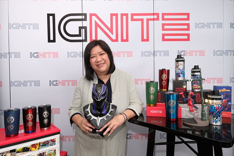 “ในปีนี้ IGNITE ได้สร้างปรากฏการณ์อีกครั้งกับคอลเลกชั่นเปิดตัวตอนต้นปีกับแก้วเก็บอุณหภูมิจากตัวเอกในทีม Avengers อันได้แก่ Loki, Thor, Black Panther, Captain America, Iron Man, Spiderman พร้อมพิเศษสุดกับการออกแก้วเพื่อฉลองไปกับหนังของ Dr. Strange ที่กำลังจะออกฉายในช่วงกลางปีนี้ ทั้งยังมีสินค้าในกลุ่ม 3D ที่ขึ้นรูปมาแล้วแฟน ๆ ห้ามพลาด เพราะไม่เพียงแต่จะเป็นชิ้นงานขึ้นรูปเป็นโมเดลสวย ๆ แต่ยังสามารถนำไปใช้ประโยชน์เพิ่มเติมได้อย่าง โคมไฟ Black Panther หรือโคมไฟ Spider Man ซึ่งเหล่าสาวกของมาร์เวลห้ามพลาดเป็นอันขาด”