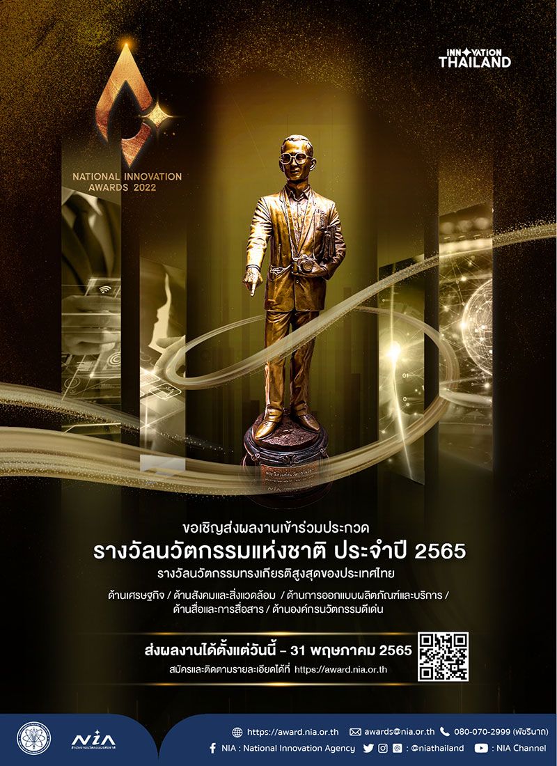 สำนักงานนวัตกรรมแห่งชาติ (องค์การมหาชน) หรือ NIA ภายใต้กระทรวงการอุดมศึกษา วิทยาศาสตร์ วิจัยและนวัตกรรม เชิญชวนเหล่านวัตกร สตาร์ทอัพ สถาบันการศึกษา หน่วยงานภาครัฐ หน่วยงานภาคเอกชน และองค์กรเพื่อสังคมและชุมชน ร่วมส่งผลงานนวัตกรรมเข้าร่วมประกวดชิงรางวัลนวัตกรรมอันทรงเกียรติสูงสุดของประเทศไทย ตั้งแต่วันนี้ ถึง 31 พฤษภาคม 2565