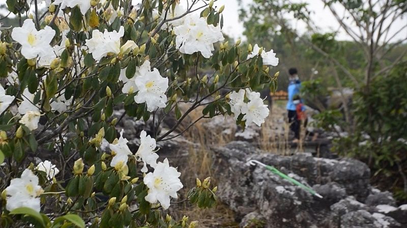 ในช่วงนี้สภาพอากาศเปลี่ยนแปลงบ่อยในบางพื้นที่มีฝนตกและอากาศร้อน ขณะที่อุทยานแห่งชาติภูหินร่องกล้าตามลานหินปุ่ม ลานหินแตกในช่วงนี้ “ดอกกุหลาบขาว” หรือ “ดอกสามี” ได้บานสะพรั่ง สีขาวสดสวยงามไปทั่วบริเวณแล้วกว่า 30% จนถึงปลายเดือนพฤษภาคมนี้