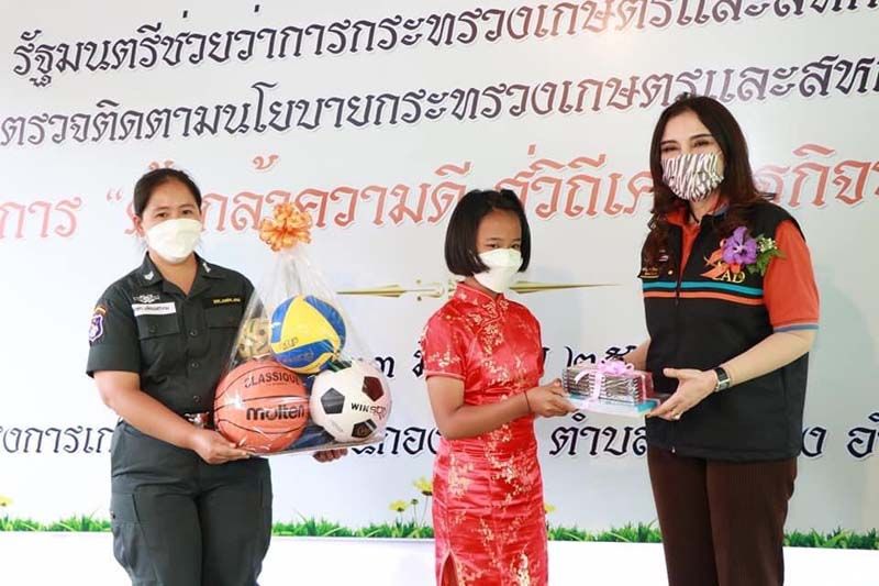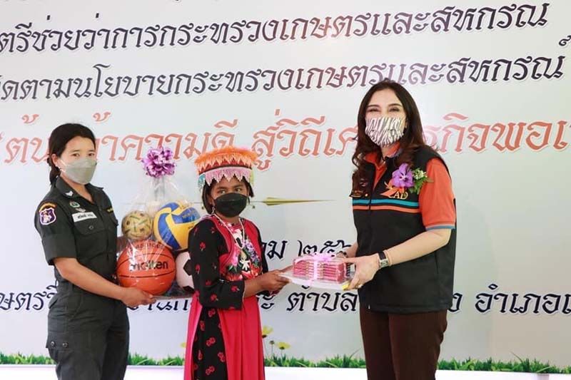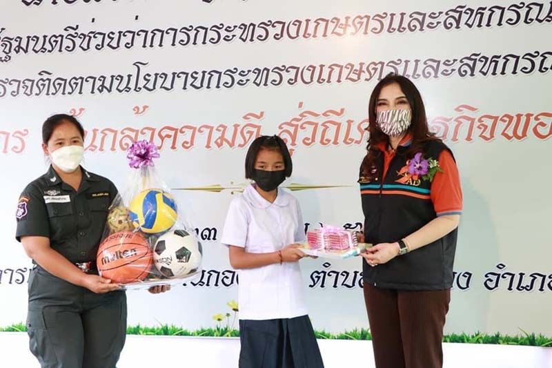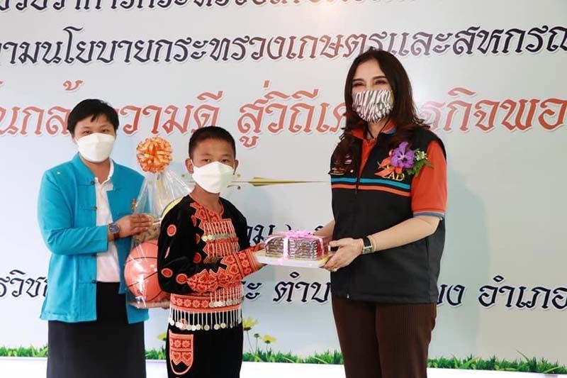 ในโอกาสนี้ รัฐมนตรีช่วยว่าการกระทรวงเกษตรและสหกรณ์ได้มอบอุปกรณ์เครื่องเขียนและกีฬาให้แก่นักเรียน จำนวน 4 โรงเรียน ได้แก่ โรงเรียนตำรวจตระเวนชายแดนอาโอยาม่า โรงเรียนตำรวจตระเวนชายแดนบ้านหนองแขม โรงเรียนตำรวจตระเวนชายแดนเฉลิมพระเกียรติ และโรงเรียนบ้านกองแหะ พร้อมทั้งเยี่ยมชมโครงการการจัดทำบัญชีกิจกรรมบัญชีสหกรณ์นักเรียน และนิทรรศการของหน่วยงานในสังกัดกระทรวงเกษตรและสหกรณ์ สำหรับโครงการ “ต้นกล้าความดี สู่วิถีเศรษฐกิจพอเพียง” จัดทำโดยกรมตรวจบัญชีสหกรณ์ เพื่อให้ครูและนักเรียนได้เรียนรู้วิธีการจดบันทึกบัญชีกิจกรรมสหกรณ์นักเรียน กิจกรรมผลิตผลทางการเกษตรเพื่ออาหารกลางวัน และมีความรู้ความเข้าใจในหลักการของสหกรณ์ ทำให้นักเรียนรู้จักการจดบันทึกรายรับ-รายจ่ายของตนเอง รู้จักการวางแผนการใช้จ่ายของตนเอง การจัดการเรียนรู้กิจกรรมสหกรณ์ในสถานศึกษา ซึ่งถือเป็นแหล่งเรียนรู้โดยการปฏิบัติจริง รู้จักฝึกการพึ่งพาตนเอง การช่วยเหลือซึ่งกันและกัน มีความรับผิดชอบ และความซื่อสัตย์สุจริต สร้างความเข้มแข็งให้เกิดขึ้นในโรงเรียน ครอบครัว และชุมชน โดยมีผู้เข้ารับการอบรมกิจกรรมหลักสูตร “การจัดทำบัญชีกิจกรรมสหกรณ์นักเรียน กิจกรรมผลิตทางการเกษตรเพื่ออาหารกลางวัน บัญชีต้นกล้าเศรษฐกิจพอเพียง บัญชีรายรับ-รายจ่ายในครัวเรือน” เป็นครูและนักเรียนของโรงเรียนในสังกัดตำรวจตระเวนชายแดน จำนวน 3 โรงเรียน โรงเรียนละ 6 คน แบ่งเป็นครูและนักเรียน จำนวน 5 คน ผู้ปกครอง จำนวน 1 คน และผู้เข้ารับการอบรมกิจกรรมหลักสูตร “การจัดทำบัญชีต้นทุนประกอบอาชีพ” เป็นครูและนักเรียนโรงเรียนบ้านกองแหะ อำเภอแม่ริม จังหวัดเชียงใหม่ จำนวน 5 คน และเกษตรกรในโครงการเกษตรวิชญา จำนวน 3 คน รวมทั้งสิ้น 26 คน โดยกรมตรวจบัญชีสหกรณ์ มีโรงเรียนในความรับผิดชอบ จำนวน 447 โรงเรียน อยู่ในความรับผิดชอบและการกำกับแนะนำของสำนักงานตรวจบัญชีสหกรณ์เชียงใหม่ จำนวน 28 โรงเรียน โดยแบ่งเป็นโรงเรียนตำรวจตระเวนชายแดน จำนวน 16 โรงเรียน และโรงเรียนในความดูแลของสำนักเขตพื้นที่การศึกษาขั้นพื้นฐาน (สพฐ) จำนวน 12 โรงเรียน