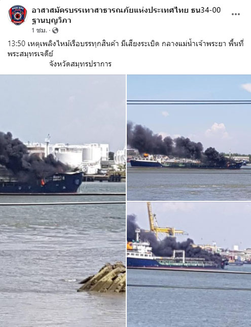 เมื่อเวลา 13.50 น. วันที่ 27 มี.ค.65 รับแจ้งเหตุเพลิงไหม้เรือบรรทุกสินค้า กลางแม่น้ำเจ้าพระยา ในเขตพื้นที่พระสมุทรเจดีย์ จ.สมุทรปราการ ขณะนี้เจ้าหน้าที่เกี่ยวข้องอยู่ระหว่างเร่งตรวจสอบ. -008