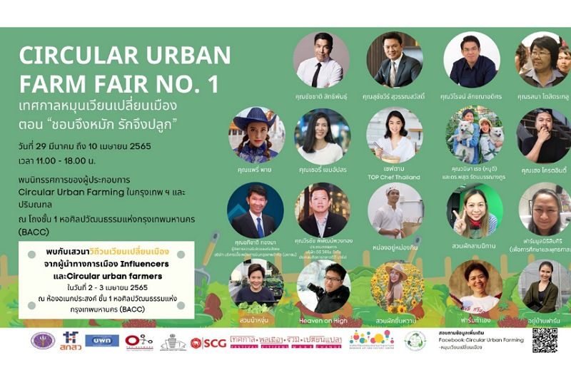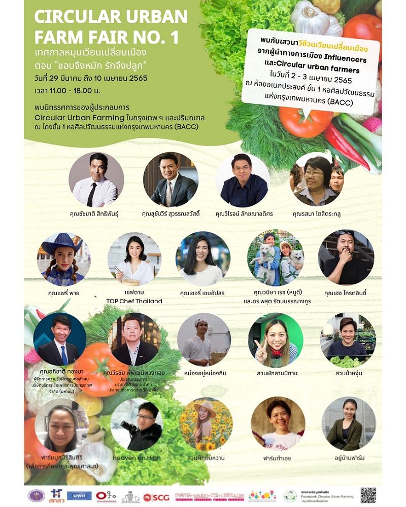 นางสาวปารีณา ประยุกต์วงศ์ ผู้จัดการสมาคมเครือข่ายเพื่อการพัฒนาที่ยังยืน กล่าวว่า “วัตถุประสงค์ของการจัดงานในครั้งนี้ มุ่งเน้นการนำเสนอผลงานของผู้ประกอบการรายย่อยและภาคธุรกิจที่ได้เข้าร่วมโครงการวิจัยเชิงปฏิบัติการการประกอบการเกษตรอินทรีย์ในเมืองบนฐานเศรษฐกิจหมุนเวียนพื้นที่กรุงเทพและปริมณฑลซึ่งได้ดำเนินการมาตั้งแต่เดือนพฤษภาคม ปีที่แล้ว และเพื่อกระตุ้นให้ประชาชนในเขตเมืองได้ตระหนักถึงความสำคัญของเศรษฐกิจหมุนเวียนโดยเริ่มต้นจากสิ่งใกล้ตัวจากการหมักเศษขยะอินทรีย์ให้เป็นสารปรุงดินเพื่อมาปลูกผัก ซึ่งถือเป็นเนื้อหาหลักที่โครงการได้มุ่งเน้น เพื่อลดปริมาณขยะอินทรีย์ออกสู่สาธารณะ และเป็นการเพิ่มพื้นที่สีเขียว ตลอดจนเพิ่มความมั่นคงทางอาหารปลอดภัยอย่างยั่งยืนให้แก่คนเมือง โดยในวันที่ 2-3 เมษยน 2565 จะมีงานเสวนาพิเศษโดยมี นายชัชชาติ สิทธิพันธุ์ ผู้สมัครลงเลือกตั้งผู้ว่าราชการกรุงเทพมหานคร เป็นประธานเปิดงาน และร่วมเสวนาในหัวข้อ “มุมมองขยะกรุงเทพมหานคร สู่เส้นทางการหมุนเวียน/เปลี่ยนเมือง” ในวันเสาร์ที่ 2 เมษายน 2565 เวลา 13.00 น. โดยมีผู้ร่วมเสวนาท่านอื่นๆ จากหลากหลายวงการเข้าร่วมงาน”