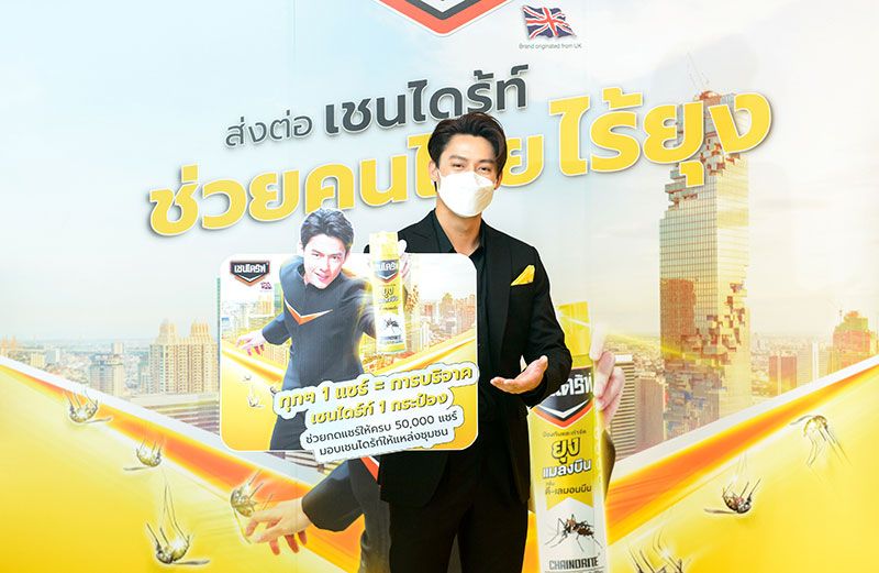 บริษัท เชอร์วู้ด คอร์ปอเรชั่น (ประเทศไทย) จำกัด (มหาชน) หรือ SWC ผลิตภัณฑ์ในกำจัดแมลงแบรนด์ “เชนไดร้ท์” (Chaindrite) ชวน “หมาก- ปริญ สุภารัตน์” รับหน้าที่เป็นพรีเซ็นเตอร์ปีที่ 2 เข้าร่วมโครงการเพื่อสังคมในแคมเปญ #ส่งต่อเชนไดร้ท์ช่วยคนไทยไร้ยุง โดยมีวัตถุประสงค์ให้เกิดการช่วยเหลือและลดปัญหาไข้เลือดออกให้กับแหล่งชุมชน ซึ่ง “หมาก-ปริญ” ได้เข้ามามีส่วนร่วมและสนับสนุนในแคมเปญนี้ โดยการโพสต์ในไอจีส่วนตัว และเปิดโอกาสให้คนไทยร่วมแชร์เพื่อส่งมอบ “เชนไดร้ท์ สูตรกำจัดยุงและแมลงบิน กระป๋องสีเหลือง” ในการลดปัญหาไข้เลือดออกให้กับแหล่งชุมชน