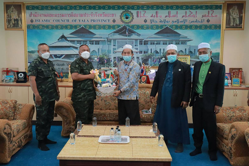 29 มีนาคม 2565 พลโท เกรียงไกร ศรีรักษ์ แม่ทัพภาคที่ 4 / ผู้อำนวยการรักษาความมั่นคงภายในภาค 4 พร้อมด้วย พลโท ธิรา แดหวา แม่ทัพน้อยที่ 4 / รองผู้อำนวยการรักษาความมั่นคงภายในภาค 4 ส่วนหน้า และคณะ ได้เดินทางเข้าพบปะเยี่ยมเยียน คณะกรรมการอิสลามประจําจังหวัดยะลา นราธิวาส และสงขลา เนื่องในโอกาสเดือนรอมฎอน ประจำปีฮิจเราะห์ศักราช 1443 ส่งกำลังใจฝากผ่านไปยังพี่น้องมุสลิม ขอให้รอมฎอนปีนี้ได้เก็บเกี่ยวผลบุญอย่างสมบูรณ์ตามที่ได้ตั้งใจ ตลอดจนเชิญชวนผู้หลงผิดได้กลับมาหาครอบครัว สู้ด้วยแนวทางสันติวิธี ให้รอมฎอนปีนี้เป็นปีอันประเสริฐ โดยมีประธานคณะกรรมการอิสลามประจำจังหวัดร่วมให้การต้อนรับ และพูดคุยในครั้งนี้ ภายใต้มาตรการป้องกันการแพร่ระบาดของเชื้อไวรัส covid-19 อย่างเคร่งครัด