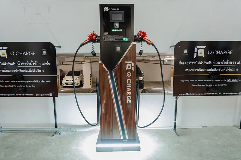 “Q Chargeคือแบรนด์ธุรกิจที่เราแตกไลน์ใหม่ ขึ้นมา เพื่อให้เป็นที่รู้จักของคนทั่วไป ในฐานะสถานีชาร์จไฟฟ้า ที่จะติดตั้งอยู่ทุกอาคารในกรุงเทพฯ และ หัวเมืองต่างๆ เพื่อให้คนเห็นจนรู้สึกคุ้นชิน และ มั่นใจมากขึ้นที่จะเปลี่ยนมาใช้รถยนต์ไฟฟ้า ผลักดันแผนพัฒนา EV ของประเทศไทย ซึ่งวันนี้เราได้ติดตั้งสถานี Q Charge ไปแล้วกว่า 10 จุดในกรุงเทพฯ โดย 8 สถานีจะอยู่ในชั้นจอดรถของคอนโดมิเนียม และอีก 2 สถานีจะอยู่ในโรงพยายาล” สำหรับในอนาคต ผู้บริหารสาวย้ำอย่างหนักแน่นว่า จะติดตั้งQ Charge ให้ได้ถึง 2500 จุด ภายในระยะเวลา 5 ปี ซึ่งก็จะรวมถึงการติดตั้งในพื้นที่ส่วนบุคคล รวมถึง ห้างสรรพสินค้า อาคารแบบไฮไรส์ และ โรงแรมด้วย