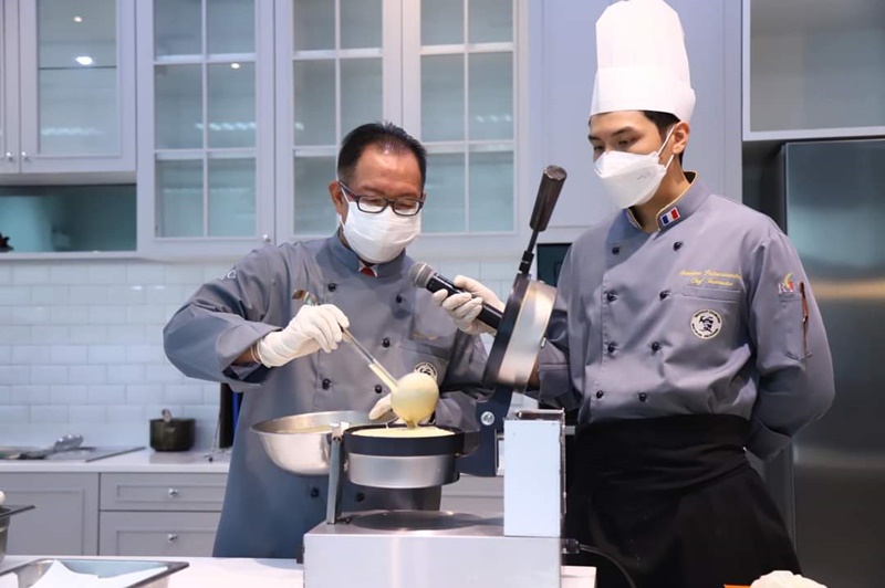 ส่วนในหลักสูตร Chef ฝรั่งเศส (สองปริญญา สองประกาศนียบัตร สาปีในประเทศไทย 1 ปีในประเทศฝรั่งเศสเป็นการดำเนินการร่วมกับสถาบันการครัวดิซิพ เอสโคฟิเอร์ และมหาวิทยาลัย เซอี แซร์จี ปารีส ของประเทศฝรั่งเศส ซึ่งนักศึกษาจะได้รับการประกาศนียบัตรรับรองคุณวุฒิวิชาชีพด้านศิลปะการประกอบอาหารฝรั่งเศสจากกระทรวงศึกษาธิการของฝรั่งเศส