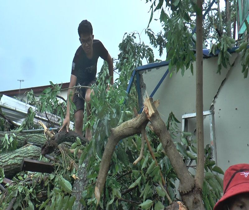 หลังเกิดเหตุก็มีเจ้าหน้าที่เข้ามาช่วยจึงออกมาได้ ส่วนลูกชายที่ติดอยู่ด้วยไม่ได้รับบาดเจ็บ คาดว่าค่าเสียหายกว่า 4 แสน บาท ซึ่งหลังลมสงบก็ยังพบรถยนต์เก๋งของชาวบ้านที่จอดอยู่ใกล้ๆกับบ้านที่เกิดเหตุ เสียหายเช่นกัน นางสาวรุ่งนภา อายุ 44 ปี เจ้าของรถยนต์เก๋งบอกว่า ก่อนที่จะเกิดลมกรรโชกแรงได้นำรถมาจอดไว้ ซึ่งปกติก็จะจอดรถในบ้านไม่ได้จอดตรงนี้ แต่พอดีจะพาลูกไปหัดขับรถจึงเอามาจอดไว้ข้างนอก จึงทำให้รถเสียหายอย่างที่เห็น แต่โชคดีที่ไม่มีใครได้รับบาดเจ็บหรือเสียชีวิตจากเหตุการณ์ดังกล่าว. 012