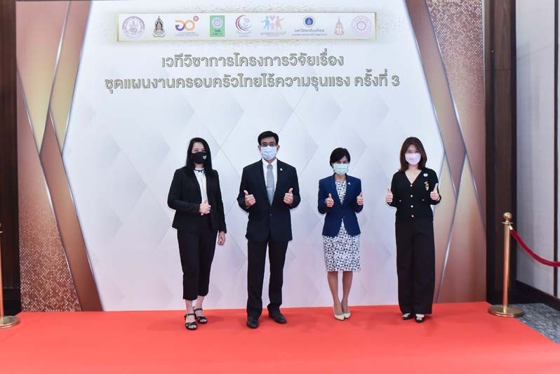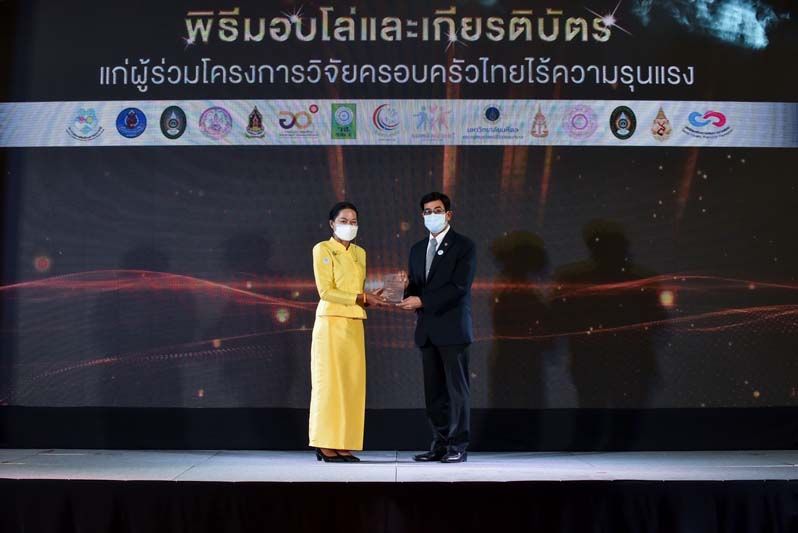 โครงการวิจัยเรื่อง ชุดแผนงานครอบครัวไทยไร้ความรุนแรงซึ่งได้รับทุนสนับสนุนการวิจัย จาก สำนักงานการวิจัยแห่งชาติ(วช.) โดยมีภาคีเครือข่าย นำโดยศูนย์คุณธรรม (องค์การมหาชน) ร่วมกับ คณะแพทยศาสตร์ ศิริราชพยาบาล สำนักงานอัยการสูงสุด มหาวิทยาลัยมหาจุฬาลงกรณราชวิทยาลัย กระทรวงวัฒนธรรม กระทรวงการอุดมศึกษา วิทยาศาสตร์ วิจัยและนวัตกรรม กรมกิจการสตรีและสถาบันครอบครัว กระทรวงการพัฒนาสังคมและความมั่นคงของมนุษย์ กระทรวงยุติธรรม และยังมีหน่วยงาน ที่เป็นพลังขับเคลื่อนที่สำคัญในพื้นที่