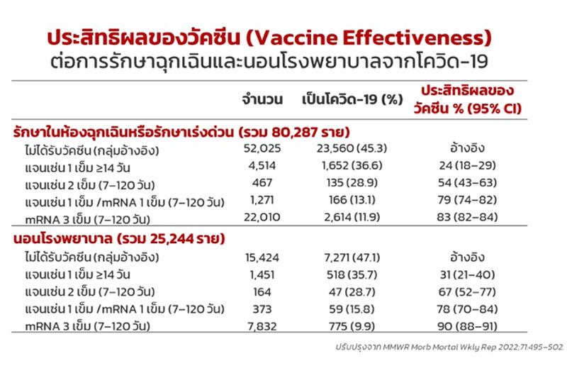 เมื่อวานมีการตีพิมพ์ในรายงานการเจ็บป่วยและเสียชีวิต (Morbidity and Mortality Weekly Report, MMWR) ของศูนย์ควบคุมโรคของสหรัฐอเมริกา (Central of Disease Control, CDC) เรื่องประสิทธิผลของวัคซีน (Vaccine Effectiveness, VE) หรือความสามารถในการป้องกันความรุนแรงของโควิด-19 ของวัคซีนของบริษัทแจนเซน กับวัคซีน mRNA (ไฟเซอร์หรือโมเดอนา) ในรัฐ 10 รัฐ ระหว่างวันที่ 16 ธ.ค.2564 ถึง 7 มีนาคม 2565 ซึ่งเป็นช่วงการระบาดของโควิด-19 สายพันธุ์โอมิครอน