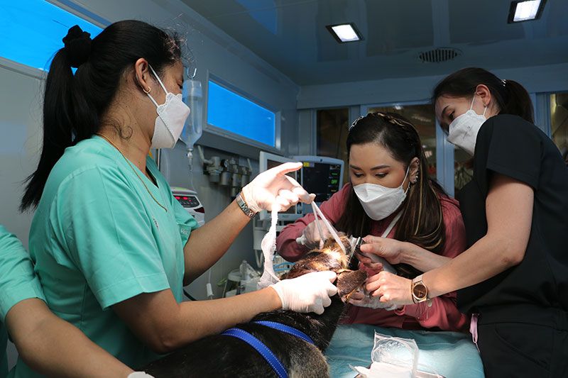 อีกทั้ง ยังได้รับการสนับสนุนทีมสัตวแพทย์ และเจ้าหน้าที่จากหน่วยงานต่างๆ ที่เกี่ยวข้อง อาทิ สำนักงานปศุสัตว์จังหวัดอุดรธานี และจังหวัดหนองบัวลำภู สำนักงานปศุสัตว์มหาวิทยาลัยราชภัฏจังหวัดอุดรธานี และมณฑลทหารบกที่ 24 ร่วมออกหน่วยให้บริการตรวจรักษาสุขภาพทั่วไปของสัตว์ พร้อมกับให้บริการฉีดวัคซีนป้องกันโรคพิษสุนัขบ้าและผ่าตัดทำหมันให้กับสุนัขและแมวจรจัด และสัตว์เลี้ยงของประชาชนชาวจังหวัดอุดรธานีและจังหวัดข้างเคียงที่มาขอรับบริการเป็นจำนวนมาก สำหรับวันนี้ มีสุนัขและแมวที่ได้รับการฉีดวัคซีนรวมจำนวน 144 ตัว และ มีการผ่าตัดทำหมันให้กับสุนัขและแมวรวมจำนวน 124 ตัว
