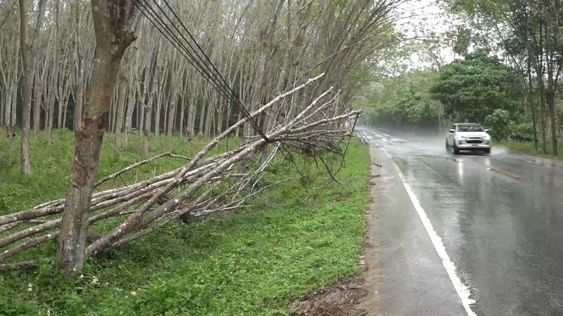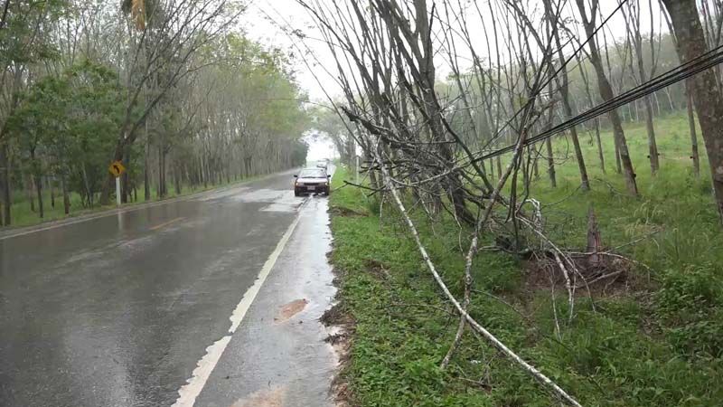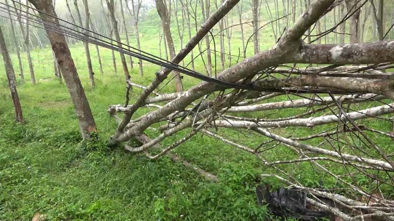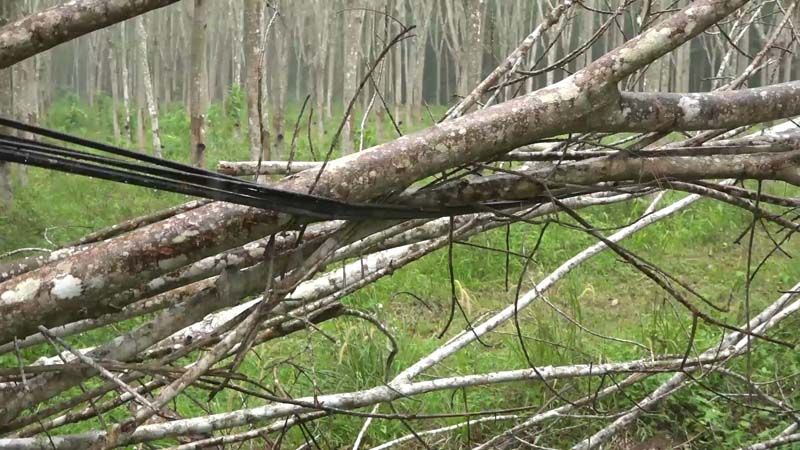 ชาวบ้านก็ได้แต่วอนให้หน่วยงานที่รับผิดชอบ ช่วยมาดำเนินการนำต้นยางพาราที่ล้มทับสายไฟฟ้าแรงสูงออกให้ด้วย เนื่องจากหากว่าสายไฟฟ้าแรงสูงขาด ก็จะทำให้ไฟฟ้ารัดวงจรอาจจะเกิดไฟฟ้าช็อตผู้คนที่ผ่านไปมาได้ รับอันตราย และที่สำคัญ บ้านในละแวดนั้นหากสายไฟขาด ไฟฟ้าในหมู่บ้านก็จะดับ ไม่มีไฟฟ้าใช้อีกด้วย. -008