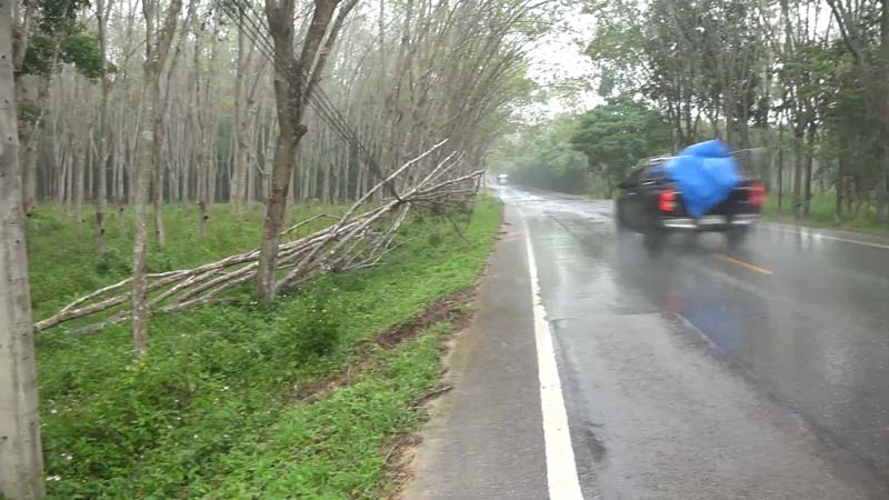 ชาวบ้านก็ได้แต่วอนให้หน่วยงานที่รับผิดชอบ ช่วยมาดำเนินการนำต้นยางพาราที่ล้มทับสายไฟฟ้าแรงสูงออกให้ด้วย เนื่องจากหากว่าสายไฟฟ้าแรงสูงขาด ก็จะทำให้ไฟฟ้ารัดวงจรอาจจะเกิดไฟฟ้าช็อตผู้คนที่ผ่านไปมาได้ รับอันตราย และที่สำคัญ บ้านในละแวดนั้นหากสายไฟขาด ไฟฟ้าในหมู่บ้านก็จะดับ ไม่มีไฟฟ้าใช้อีกด้วย. -008