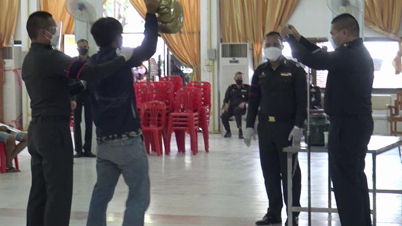 เมื่อเวลา 10.00.น.วันที่ 7 เม.ย.65 ผู้สื่อข่าวรายงานบรรยากาศที่บริเวณศาลาหอประชุมที่ว่าการอำเภอบ้านไร่ ซึ่งเป็นจุดคัดเลือกทหารกองเกินเข้ารับราชการเป็นทหารกองประจำการ ณ พื้นที่อำเภอบ้านไร่ จ.อุทัยธานี ระหว่างวันที่ 7-8 เม.ย.65 บรรยากาศเป็นไปอย่างคึกคัก โดยในวันแรกมีผู้เข้ารับการคัดเลือกจำนวน 114 คน ในการจับใบดำและใบแดง ทั้งนี้ ได้มีหนุ่มคนหนึ่งอุ้มพระพุทธรูปางสมาธิเข้าไปจับสลากลุ้นใบดำใบแดงด้วย โดยได้ใบดำทำให้หนุ่มคนดังกล่าวกระโดดด้วยความดีใจ สร้างเสียงฮือฮาให้กับเพื่อนๆ ที่เป็นกองเชียร์รอลุ้นอยู่ด้านนอกอย่างมาก