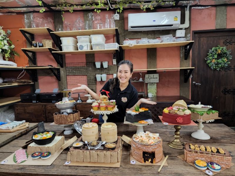 ส่วนอีกหนึ่งอาชีพที่พิธีกรสาว “โบว์ลิ่ง”เรียกว่ามันแหวกแนวจริง ๆ นั่นคือการทำเค้กเป็นเมนูอาหารคาว ของ คุณ ปลา เจ้าของร้านปลาวี่ดิเซิร์ท คาเฟ่. ที่มีไอเดียบรรเจิดมาก โดยได้นำเอาเค้กทั่วไปมาปั้นแต่งให้เป็นรูปของอาหารคาวมีตั้งแต่ ข้าวมันไก่ ต้มยำกุ้งน้ำข้นหม้อไฟ หมูชาบูที่ดูแล้วแยกไม่ออกจริงๆ ว่าที่เห็นคือทำจากเค้กนั่นเอง และยังมีอีกหลากหลายเมนูอาหารคาวสุดพิเศษ โดย คุณปลา บอกว่าได้แรงบันดาลใจจากการที่ไม่ต้องการทำเค้กให้เหมือนใคร ให้มันดูแปลกแหวกแนว เมื่อลูกค้าเห็นแล้วต้อง “ว้าว” แม้จะเริ่มต้นคิดแบบง่ายๆ แต่วิธีการทำนั้นไม่ได้ง่ายอย่างที่คิดจริงๆ