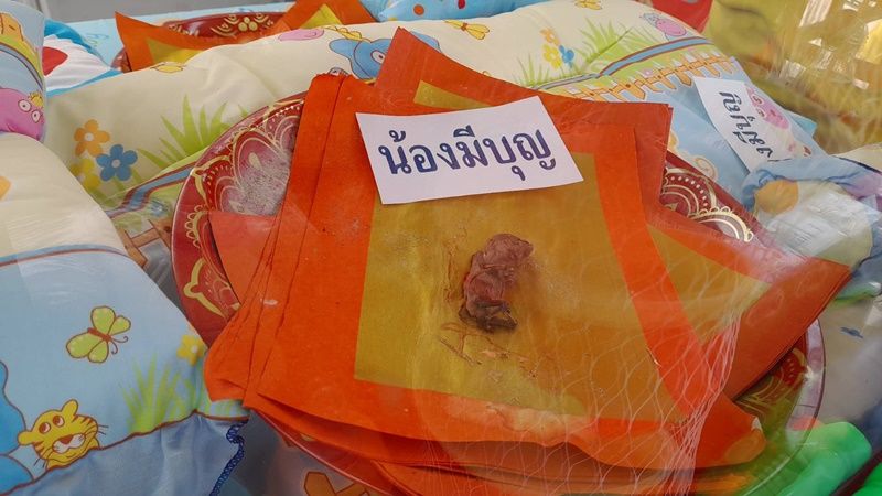 จึงเดินทางไปตรวจสอบที่พุทธสมาคมเพียวเยี้ยงไท้ศรีราชา ที่บริเวณหน้าห้องเก็บกระดูกพบเจ้าหน้าที่ของพุทธสมาคมเพียวเยี้ยงไท้ และประชาชนผู้แสวงบุญ ได้นำเสื้อผ้าของเล่น นม ขนม น้ำแดง มาเซ่นไหว้ลูกกรอก “มีบุญ” เนื่องจากได้รับโชคลาภจากการเล่นหวยหุ้นต่างประเทศ และการค้าขายดีขึ้น จากการขอพรจากรูปของลูกกรอก “มีบุญ” ที่นำไปลงในเพจล้างป่าช้า เมื่อขอสำเร็จจึงประสานมาที่เจ้าหน้าที่ของพุทธสมาคมเพียวเยี้ยงไท้ศรีราชา โดยโอนเงินมาให้ทางเจ้าหน้าที่ไปจัดซื้อ เสื้อผ้า ของเล่น นม น้ำแดง ขนมมาเซ่นไหว้ลูกกรอกแทนผู้บนบานศาลกล่าวที่ขอจากรูป แล้วสำเร็จสมปรารถนา แต่อยู่ไกลถึงจังหวัดฉะเชิงเทรา ยังไม่สามารถมาได้