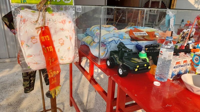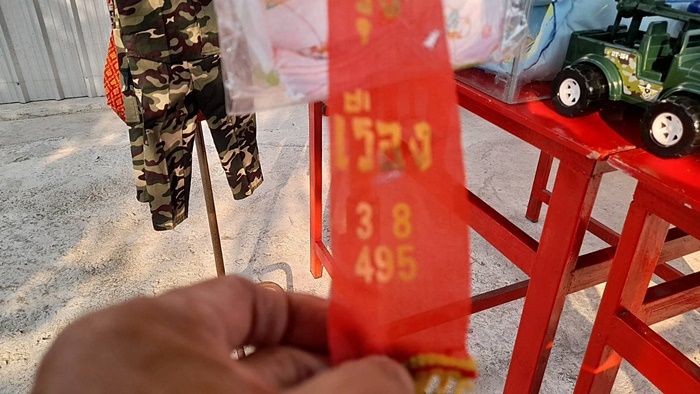 จึงได้ประสานทางเจ้าหน้าที่ให้เป็นธุระจัดทำให้ก่อนและจะเดินทางมาไหว้ลูกกรอกก่อนที่สลากกินแบ่งรัฐบาลจะออกในวันที่ 16 เม.ย.65 นี้ ซึ่งบางคนได้จุดประทัดเซ่นไหว้ลูกกรอก “มีบุญ” ได้เลขหางประทัด 495, 38 และได้นำมาห้อยไว้ในราวเสื้อผ้าของลูกกรอกมีบุญ ซึ่งในเรื่องนี้ก็แล้วแต่โชควาสนาของแต่ละคนที่จะมีดวงและก็เป็นความเชื่อของแต่ละคน – 003