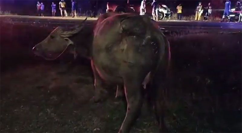 ทางด้านชาวบ้านในพื้นที่ พอได้ยินเสียงการเกิดอุบัติเหตุก็ออกมายืนดูกับ และให้ข้อมูลผู้สื่อข่าวว่า ตนก็ไม่รู้เหมือนกันว่าควายตัวนี้เป็นของใคร ตนเคยเห็นมันเดินมาแถวนี้ทุกวัน แถวยังมากินกล้วยที่บ้านตนด้วย ซึ่งก่อนหน้านี้ จุดนี้ก็เคยมีรถชนควายมาก่อนเช่นกัน แต่ไม่รุนแรงเท่าครั้งนี้ แต่ตนก็ไม่แน่ใจว่าเป็นควายตัวเดิมนี้หรือปล่าว เพราะตอนนั้นที่ชน ควายก็วิ่งไปเลย ตนยืนยันว่าไม่ใช่ควายของชาวบ้านแถวนี้แน่นอน เพราะชาวบ้านแถวนี้จะไม่ปล่อยควายออกมาเดินเพ่นพานแบบนี้ เนื่องจากมันติดกับถนนทางหลวง เสี่ยงต่อการเกิดอุบัติเหตุ แต่ควายตัวนี้น่าจะเป็นควายที่เจ้าของเลี้ยงแบบปล่อย แล้วเดินพลัดหลงมาจากที่อื่น. 012