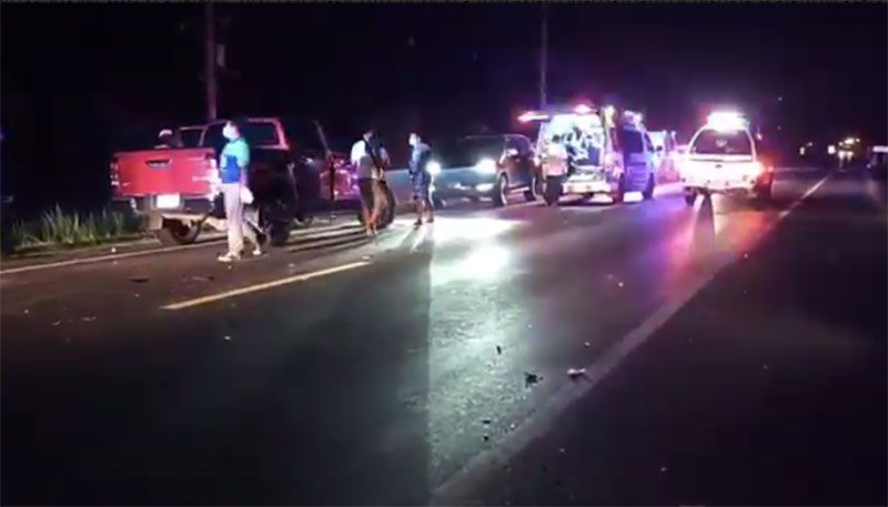 โดยมีหญิงวัยกลางคน โดยสารมา 2 คน คนขับไม่ได้รับบาดเจ็บอะไรมาก ส่วนผู้ที่โดยสารมาด้วยได้รับบาดเจ็บบริเวณแขนซ้าย เจ้าหน้าที่ได้ทำการใส่เฝือกเพื่อดามแขนให้ ส่วนอีกฝั่งของถนนพบควาย 1 ตัวนอนอยู่ สภาพขาหลังด้านซ้ายหัก และมีแผลเลือดออกบริเวณบันท้าย