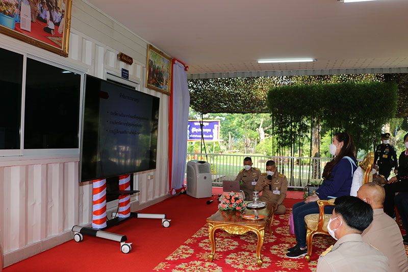 โอกาสนี้ พลเรือตรี เผดิมชัย สุคนธมัต รองผู้บัญชาการหน่วยบัญชาการนาวิกโยธินกราบทูลถวายรายงานความก้าวหน้าผลการดำเนินงานของศูนย์ดูแลสุนัขจรจัดของกองทัพเรือ โดยหน่วยบัญชาการนาวิกโยธิน ซึ่งก่อตั้งขึ้นในปี 2558 โดยศูนย์ดูแลสุนัขจรจัดแห่งนี้มีหน้าที่ ในการรับสุนัขจรจัดที่สร้างปัญหาภายในค่ายกรมหลวงชุมพร เข้าควบคุมและอุปการะอย่างมีคุณธรรม และคำนึงถึงสวัสดิภาพของสัตว์ ประชาสัมพันธ์ให้กำลังพล และครอบครัวเลี้ยงสุนัขอย่างถูกวิธี มีเมตตาธรรม และควบคุมสุนัขของตน ไม่ให้ก่อความเดือดร้อนให้กับผู้อื่นปัจจุบันดำเนินงานมาเป็นระยะเวลา 8 ปีแล้วบนพื้นที่ 5 ไร่ ที่มีขีดความสามารถรองรับสุนัข 392 ตัว โดยแบ่งเป็นพื้นที่บริหารจัดการ ดังนี้ พื้นที่อาคารปฏิบัติงาน พื้นที่คอกสุนัข พื้นที่ถังเก็บน้ำและบ่อบำบัดน้ำเสีย พื้นที่ปรับปรุงภูมิทัศน์ พื้นที่ฝึกสุนัขจรจัด อาคารกำจัดซากสัตว์ และอาคารดูแลสุนัขป่วย