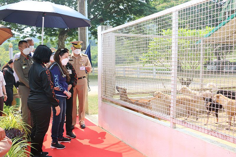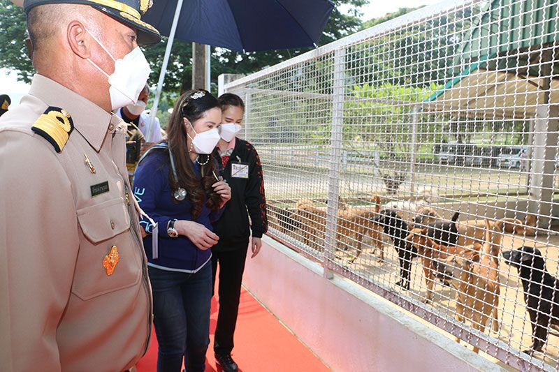 ในการนี้ ทรงพระดำเนินไปทอดพระเนตรคอกสุนัข ซึ่งมีทั้งหมด 7 คอก แยกเป็นคอกสุนัขทำหมันแล้ว 5 คอก คอกสุนัขตัวเมียยังไม่ทำหมัน 1 คอก คอกสุนัขตัวเมียยังไม่ทำหมันพร้อมลูกสุนัข 1 คอก สำหรับการดูแลสุนัขจรจัดคำนึงถึงมาตรฐานความสะอาด ถูกสุขอนามัย เช่น การดูแลทำความสะอาดคอกสุนัข รักษาสุนัขป่วย ฝึกสุนัข ให้อาหารสุนัขตามเวลา