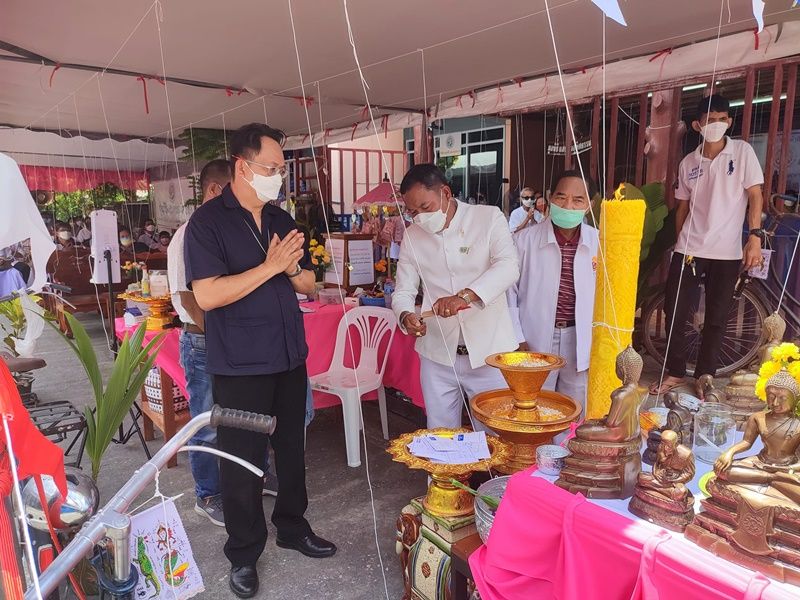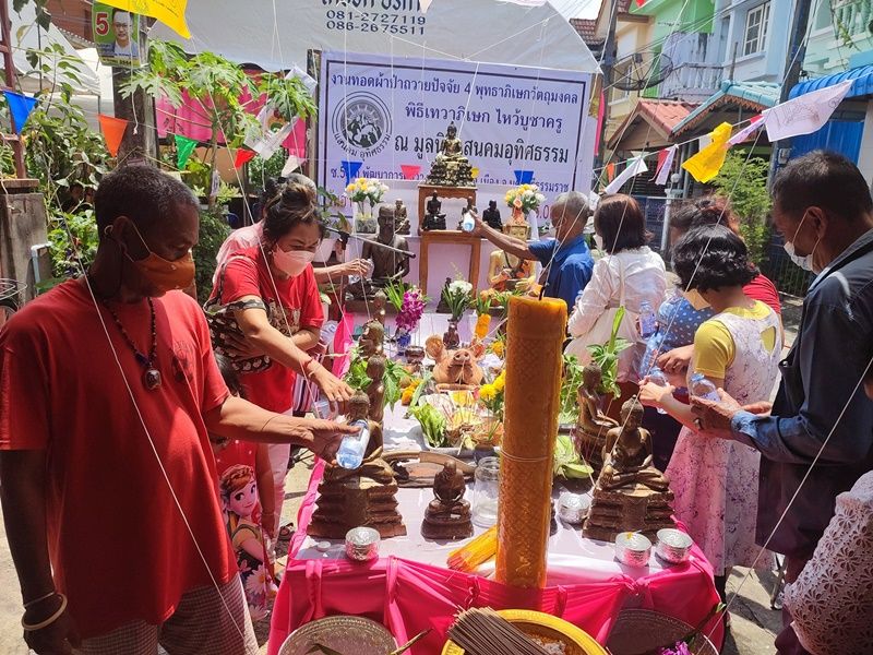 เมื่อเวลา 11.30 น.วันที่ 10 เม.ย.65 ผู้สื่อข่าวรายงานว่า ที่มูลนิธแสนคมอุทิศธรรม ถนนพัฒนาการคูขวาง ต.ในเมือง อ.เมือง จ.นครศรีธรรมราช คณะกรรมการมูลนิธิฯ จัดกิจกรรมวันสงกรานต์ สรงน้ำพระพุทธสิหิงส์ เนื่องในเทศกาลสงกรานต์ 2565 มีประชาชนเข้าร่วม ภายใต้มาตรการป้องกันและควบคุมการแพร่ระบาดของโควิด -19 อย่างเคร่งครัด สำหรับกิจกรรมประกอบด้วยพิธีเทวาภิเษก พุทธาภิเษก ไหว้บูชาครู บวงสรวงสิ่งศักดิ์สิทธิ์ และสวดเจริญพระพุทธมนต์ บริกรรมคาถา สวดปัดเป่าสิ่งชั่วร้าย โดยเฉพาะโรคร้ายไวรัสโควิด รวมทั้งสวดเสริมดวง เพิ่มพลัง เพื่อความเป็นสิริมงคล ป้องกันโรคภัยให้แก่ผู้ที่เข้าร่วมพิธี รวมทั้งคนไทยทั้งประเทศ ให้รอดพ้นจากโรคไวรัสโควิด ตามความเชื่อ หลังเสร็จสิ้นพิธี ผู้เข้าร่วมพิธีร่วมกันสรงน้ำพระพุทธสิหิงค์ ตามประเพณีวันปีใหม่ไทย รวมทั้งรับน้ำมนต์ ปลุกเสกปัดเป่าโรคร้าย และถุงยังชีพ ซึ่งเป็นยาสมุนไพรชนิดต่างๆ สำหรับต้านโรคไวรัสโควิด – 19 โดยเฉพาะฟ้าทะลายโจร ซึ่งทางมูลนิธิฯ ผลิตแจกจ่ายผู้เข่าร่วมงาน