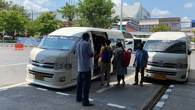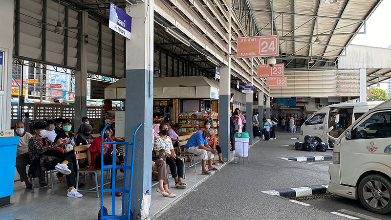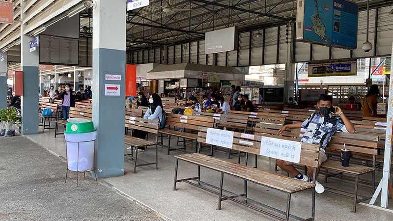 10 เมษายน 2565 บรรยากาศที่สถานีขนส่งผู้โดยสารอำเภอหาดใหญ่ แห่งที่1 ในอ.หาดใหญ่ จ.สงขลา รถโดยสารหลายเส้นทางในภาคใต้ทั้งรถบัสและรถตู้เริ่มมีผู้โดยสารเดินทางเพิ่มขึ้นเพื่อกลับภูมิลำเนาและท่องเที่ยวในช่วงเทศกาลสงขลา