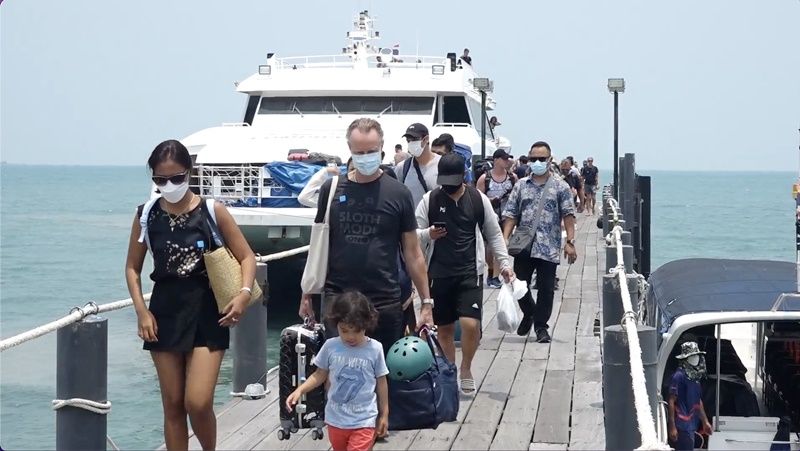 นักท่องเที่ยวที่เดินทางเข้าเกาะสมุยทางเรือพบว่ามีนักท่องเที่ยวคนไทยเดินทางเข้าเกาะสมุยเพิ่มขึ้น จากที่ผ่านมาก่อนสถานการณ์การแพร่ระบาดของเชื้อไวรัสโควิด-19 นักท่องเที่ยวไทยจะใช้เส้นทางเดินทางท่องเที่ยวทางเรือน้อยกว่านักท่องเที่ยวต่างชาติ สำหรับเรือเร็วลมพระยาที่ให้บริการเดินทางระหว่างเกาะสมุยไปยังเกาะพะงัน เกาะเต่า ผู้ให้บริการได้มีการตรอวจสอบความปลอดภัยด้วยการเตรียมเสื้อชูชีพ แพชูชีพ และระบบดับเพลิง เพื่อให้การเดินทางเที่ยวสงกรานต์ของนักท่องเที่ยวมีความปลอดภัย