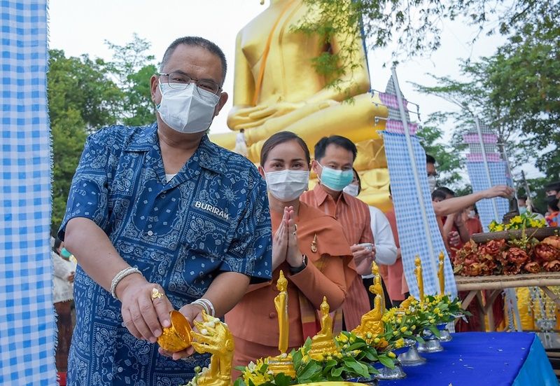 เมื่อช่วงเย็นวันที่ 12 เม.ย.65 ที่ผ่านมา ที่เขตห้ามล่าสัตว์ป่าภูเขาไฟกระโดง ต.เสม็ด อ.เมือง จ.บุรีรัมย์ นายธัชกร หัตถาธยากูล ผู้ว่าราชการจังหวัดบุรีรัมย์ พร้อมด้วยหัวหน้าส่วนราชการ และพุทธศาสนิกชนจำนวนมาก พร้อมใจกันแห่ผ้าอังสะเปลี่ยนให้องค์พระสุภัทรพิตร พระพุทธรูปคู่บ้านคู่เมืองบุรีรัมย์ ซึ่งตั้งอยู่สูงสง่า บนปากปล่องภูเขาไฟกระโดง พร้อมสรงน้ำพระพุทธรูปประจำวันเกิด ความเป็นสิริมงคลแก่ตนเองเล็กครอบครัวเนื่องในเทศกาลสงกรานต์ 2565