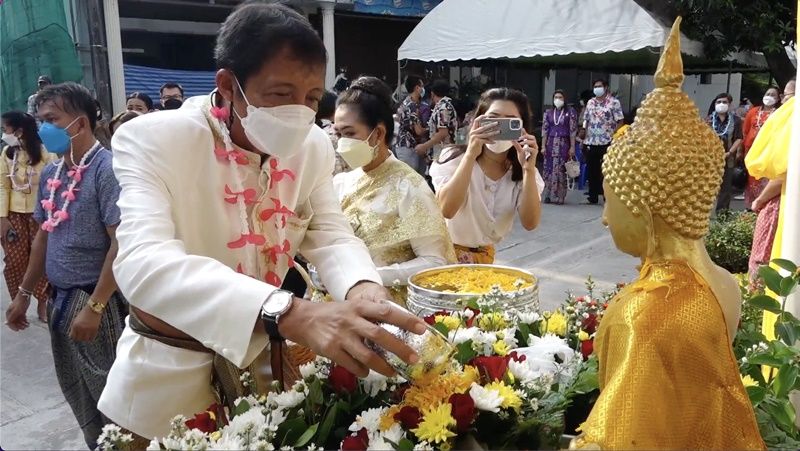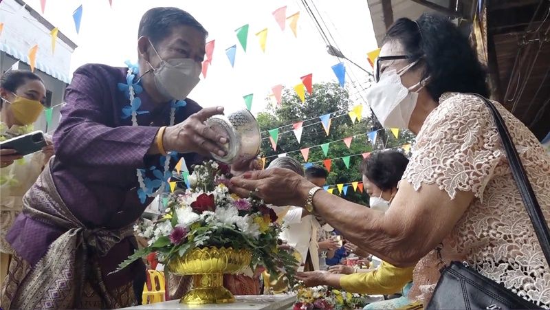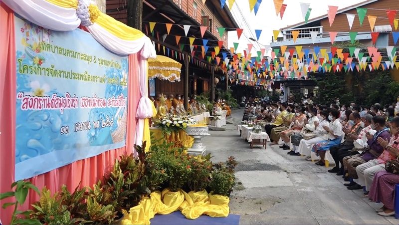 วันที่ 13 เม.ย.65 บริเวณลานชุมชนบ้านซอยกลาง ตำบลอ่างทอง อำเภอเกาะสมุย จังหวัดสุราษฎร์ธานี นายชยพล อินทรสุภา นายอำเภอเกาะสมุย พร้อมด้วยผู้พิพากษาหัวหน้าศาลจังหวัดเกาะสมุย อัยการจังหวัดเกาะสมุย นายกเทศมนตรีนครเกาะสมุย พร้อมด้วยคณะกรรมการชุมชนหมู่ที่3ตำบลอ่างทอง นำโดยนายวิศาล บรมธนรัตน์ ประธานคณะกรรมการชุมชนหน้าอำเภอ ได้ร่วมจัดงานประเพณีวันสงกรานต์