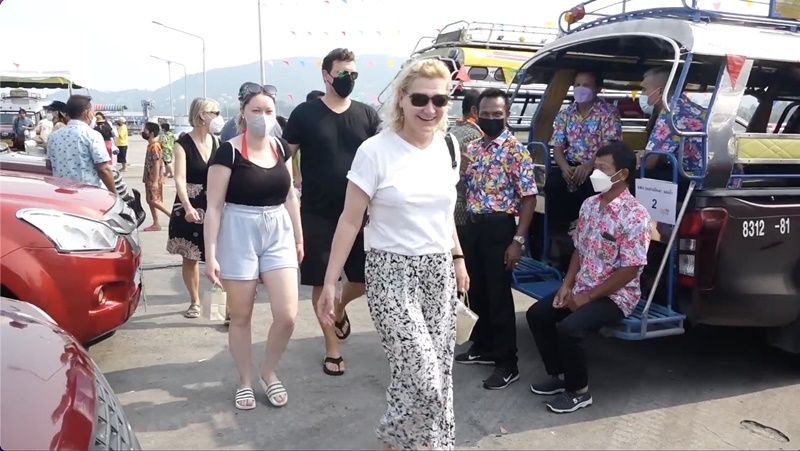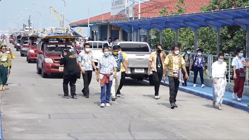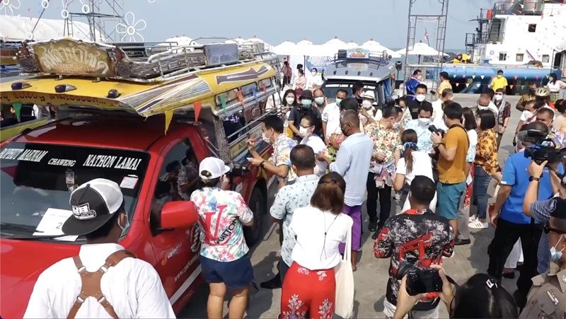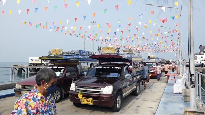 จากนั้นนายอำเภอเกาะสมุยได้ร่วมเปิดกิจกรรมวันสงกรานต์ภายใต้ชื่อ “สมุยสงกรานต์ เมล์แดง สายวัฒนธรรม” โดยนายอำเภอเกาะสมุย ได้ร่วมปล่อยขบวนรถเมล์แดงจำนวนสามสิบคัน ซึ่งรถเมย์แดงเป็นสัญญาลักษ์การเดินของชาวเกาะสมุย และเป็นรถที่ทำหน้าที่พานักท่องเที่ยวเดินทางท่องเท่ี่ยวรอบเกาะสมุย สำหรับขบวนรถเมย์แดงแบ่งออกเป็นสองเส้นทางที่ให้นักท่องเที่ยวได้สัมผัสวิถีชีวิตชาวเกาะสมุย ด้วยกิจกรรมวิถีชุมชน