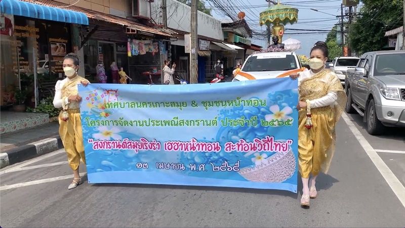 โดยภายในกิจกรรมจัดให้มีพิธีสงฆ์พร้อมร่วมตักบาตรพระภิกษุเนื่องในวันสงกรานต์รูปแบบ “สงกรานต์สมุยเริงร่า เฮฮาหน้าทอน สะท้อนวิถีไทย” โดยผู้ที่เข้าร่วมกิจกรรมต่างสวมชุดไทยย้อนยุคอย่างสวยงาม นอกจากนี้แรงงานชาวเมียนมาได้สวมชุดประจำชาติเข้าร่วมทำบุญตักบาตร ซึ่งบรรยากาศวันสงกรานต์ของเกาะสมุยครั้งนี้บรรยากาศย้อนยุคได้กลับมาคึกคักอีกครั้ง