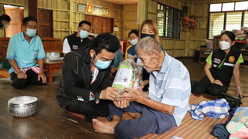 นางบุญก่อ ลูกสาวคนที่สอง ได้จัดเตรียมน้ำอบน้ำหอมใส่ขัน ให้กับนายศรัณย์วุฒิ หัวหน้าพรรคเพื่อชาติ เพื่อทำพิธีรดน้ำดำหัว ปู่ทวดบุญนักอายุ 104 ปี ก่อนรดน้ำดำหัว นายศรัณย์วุฒิ ได้ก้มกราบเท้าและมอบเงินให้จำนวนหนึ่งพร้อมถุงยังชีพ พร้อมกล่าวอวยพรขอให้อายุยืนมากขึ้น ขอให้พระและเทวดารักษาคุ้มครอง ยิ่งได้สวดมนต์ทุกคืน เหมือนเป็นการสร้างบุญบารมีมากขึ้นไปอีก โดยปู่ทวดบุญนัก โชว์บัตรประชาชนให้ดูว่า เกิดเมื่อวันที่ 1 มีนาคม พ.ศ.2461 นับรวมถึงปัจจุบันอายุได้ 104 ปี