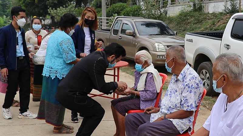 จากนั้น หัวหน้าพรรคเพื่อชาติ ทำพิธีรดน้ำดำหัวที่บริเวณฝ่ามือทั้ง 2 ข้าง ของปู่ทวดบุญนัก ก่อนทำพิธีรดน้ำที่บริเวณเท้าทั้ง 2 ข้าง พร้อมใช้มือถูล้างเท้าและใช้ผ้าสะอาดเช็ดเท้าทั้ง 2 ข้างให้กับผู้สูงอายุ ตามโบราณประเพณี เนื่องในวันสงกรานต์ หรือ วันปีใหม่ไทย โดยปู่ทวดบุญนักกล่าวอวยพร ขอให้อายุมั่นขวัญยืน ทำกิจการงานให้เจริญรุงเรือง ปราศจากโรคภัยไข้เจ็บทุกสิ่งทุกอย่าง
