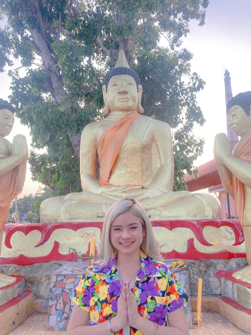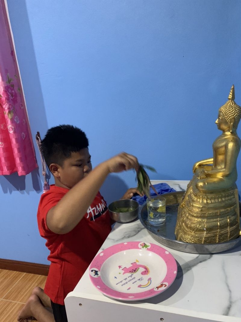 #กิมกลอย: เทศกาลสงกรานต์ปีนี้ หนู และคุณพ่อคุณแม่ ไปทำบุญที่วัด และได้สรงน้ำพระพุทธรูป เพื่อเป็นศิริมงคลแก่ชีวิตค่ะ