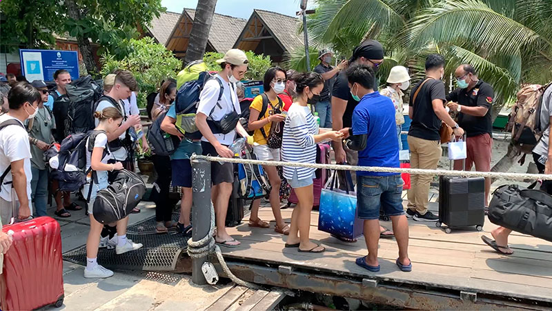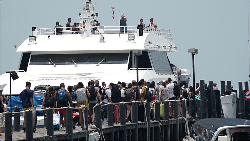 ด้านนายกรณ์ เพียรเกาะ ผู้ช่วยประธานบริษัท เรือเร็วลมพระยา จำกัด กล่าวว่า สงกรานต์ปีนี้มีความคึกคักอย่างมากเนื่องจากเป็นช่วงต่อระหว่างวันสงกรานต์กับฟูลมูนปาร์ตี้ ซึ่งทำให้มีนักท่องเที่ยวมากเป็นพิเศาต่อเนื่องกัน เนื่องจากที่ผ่านมาวันสงกรานต์กับกิจกรรมฟูลมูนปาร์ตี้นั้นจะห่างกันคนจะไม่เยอะ แต่ตอนนี้กิจกรรมฟูลมูนปาร์ตี้เป็นที่นิยมของคนไทย จะเห็นได้ว่าจะมีคนถึงสามสิบเปอร์เซ็นต์จากเมื่อก่อนจะมีแต่ชาวต่างชาติเกือบหนึ่งร้อยเปอร์เซ็นต์ ซึ่งเป็นเรื่องที่ดีหลังจากที่ได้ประสบปัญหาโรคระบาดไวรัสโควิด-19 ที่ผ่านมา ถือเป็นเรื่องที่ดีถึงแม้จะเป็นช่วงสั้นๆ ซึ่งในเดือนหน้าเราก็ไม่รู้ว่าจะดีเหมือนแบบนี้หรือเปล่า แต่ตอนนี้ที่พักบนเกาะเต่าถูกจองเต็มหมดแล้วและที่เกาะพะงันก็คาดว่าห้องพักถูกจองเต็มเช่นกัน. 012