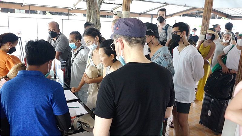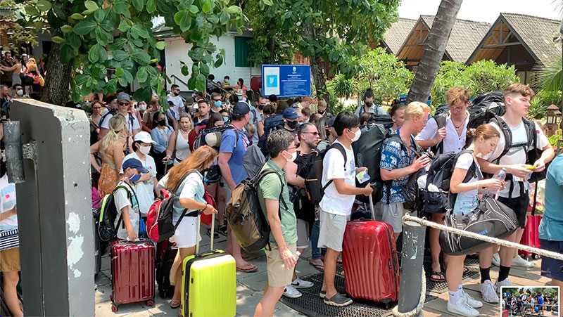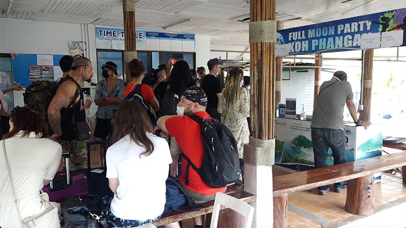 16 เมษายน 2565 ที่บริเวณท่าเทียบเรือบริษัท เรือเร็วลมพระยา จำกัด อำเภอเกาะสมุย จังหวัดสุราษฎร์ธานี มีนักท่องเที่ยวที่ส่วนใหญ่เป็นนักท่องเที่ยวต่างชาติต่างลากกระเป๋าเดินทาง และสะพายเป้มาเพื่อซื้อตั๋วโดยสารเรือโดยสาร เพื่อเดินทางไปยังเกาะพะงันเข้าร่วมกิจกรรมฟูลมูน แบล็ค ทู เดอะ รูท ที่จัดขึ้นบริเวณหาดริ้น ตำบลบ้านใต้ อำเภอเกาะพะงัน จังหวัดสุราษฎร์ธานี พบว่านักท่องเที่ยวส่วนใหญ่จะมาจากประเทศแถบยุโรป และมีนักท่องเที่ยวชาวเอเชียบางส่วน ทำให้เรือที่เดินทางไปยังเกาะพะงันเต็มไปด้วยนักท่องเที่ยว และเนื่องจากกิจกรรมฟูลมูน แบล็ค ทู เดอะ รูท ในครั้งนี้อยู่ในช่วงวันหยุดวันสงกรานต์ จึงทำให้นักท่องเที่ยวส่วนใหญ่เดินทางมาร่วมกิจกรรมในครั้งนี้มากกว่าที่ผ่านมา