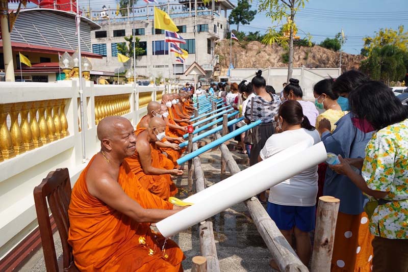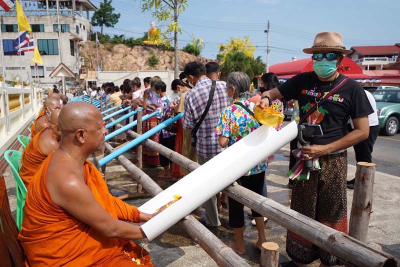 พระครูเกษมกิตติโสภณ กล่าวว่า สำหรับในปี 2565 นี้ ทางวัดสามัคคีบรรพต ยังคงให้การสืบสานอนุรักษ์ประเพณีไทย เนื่องในโอกาสเทศกาลวันสงกรานต์ แต่ในปี 2565 ช่วงโควิด-19 ระบาดนี้ ได้ปรับเปลี่ยนการรดน้ำดำหัวจากการใช้ ขันมารดน้ำตรงมือของคณะสงฆ์ ปรับเปลี่ยนมาเป็นใช้ท่อ PVC ขนาดกลางผ่าท่อด้านบนออก ประมาณ 3 – 5 นิ้ว เพื่อสามารถให้ประชาชน นำขวดหรือขันน้ำเทน้ำผ่านท่อ PVC ลงมาถึงมือของพระสงฆ์ เป็นการรักษาระยะห่างเพื่อลดการสัมผัส ที่เห็นผลได้อย่างชัดเจน ทั้งนี้ก็ต้องปรับเปลี่ยนไปตามสถานการณ์ ของการแพร่ระบาดของโควิด-19 แต่ยังคงไว้ซึ่งประเพณีไทย ในเทศกาลวันสงกรานต์ ให้คงอยู่ไว้ในทุกๆ ปี