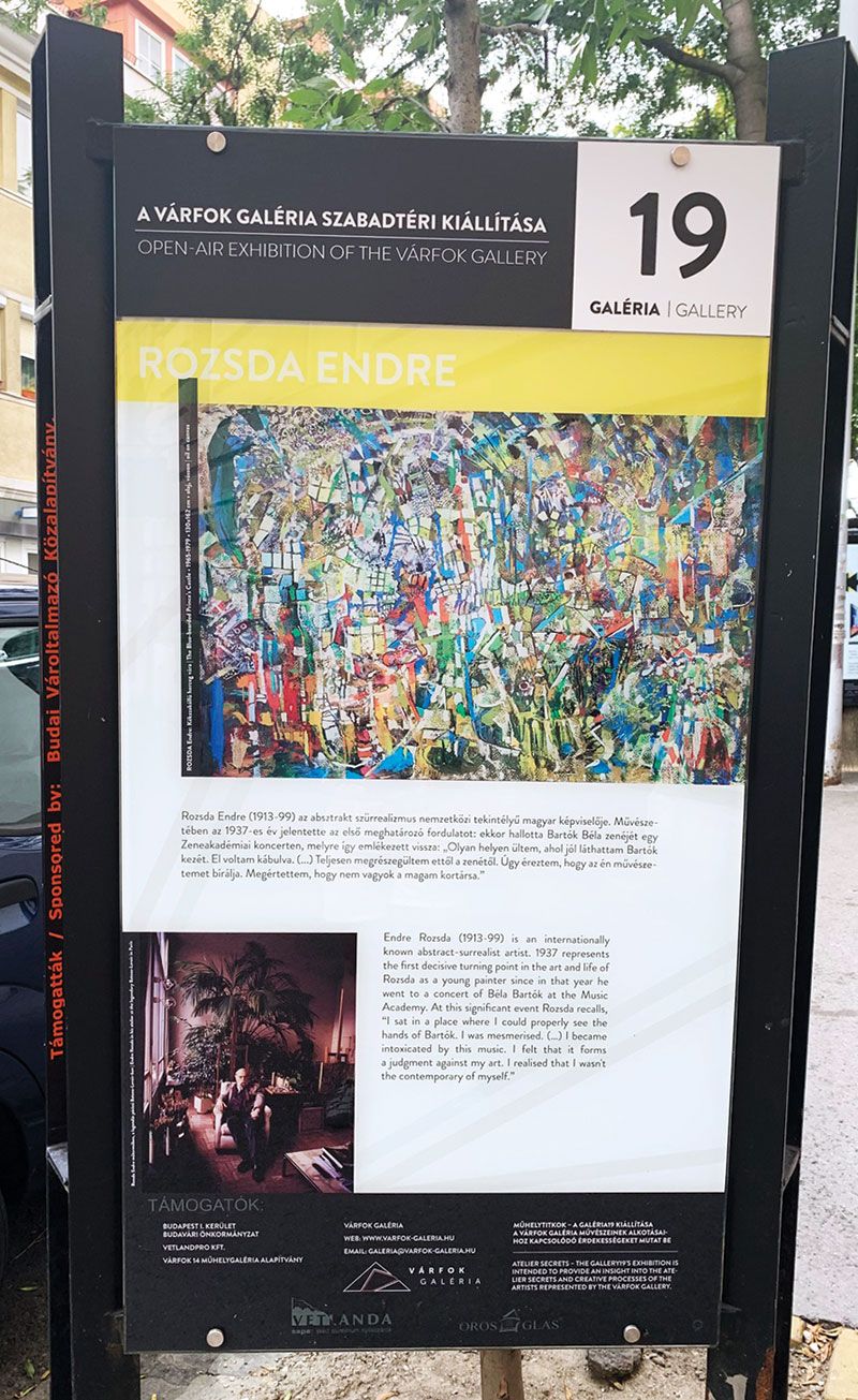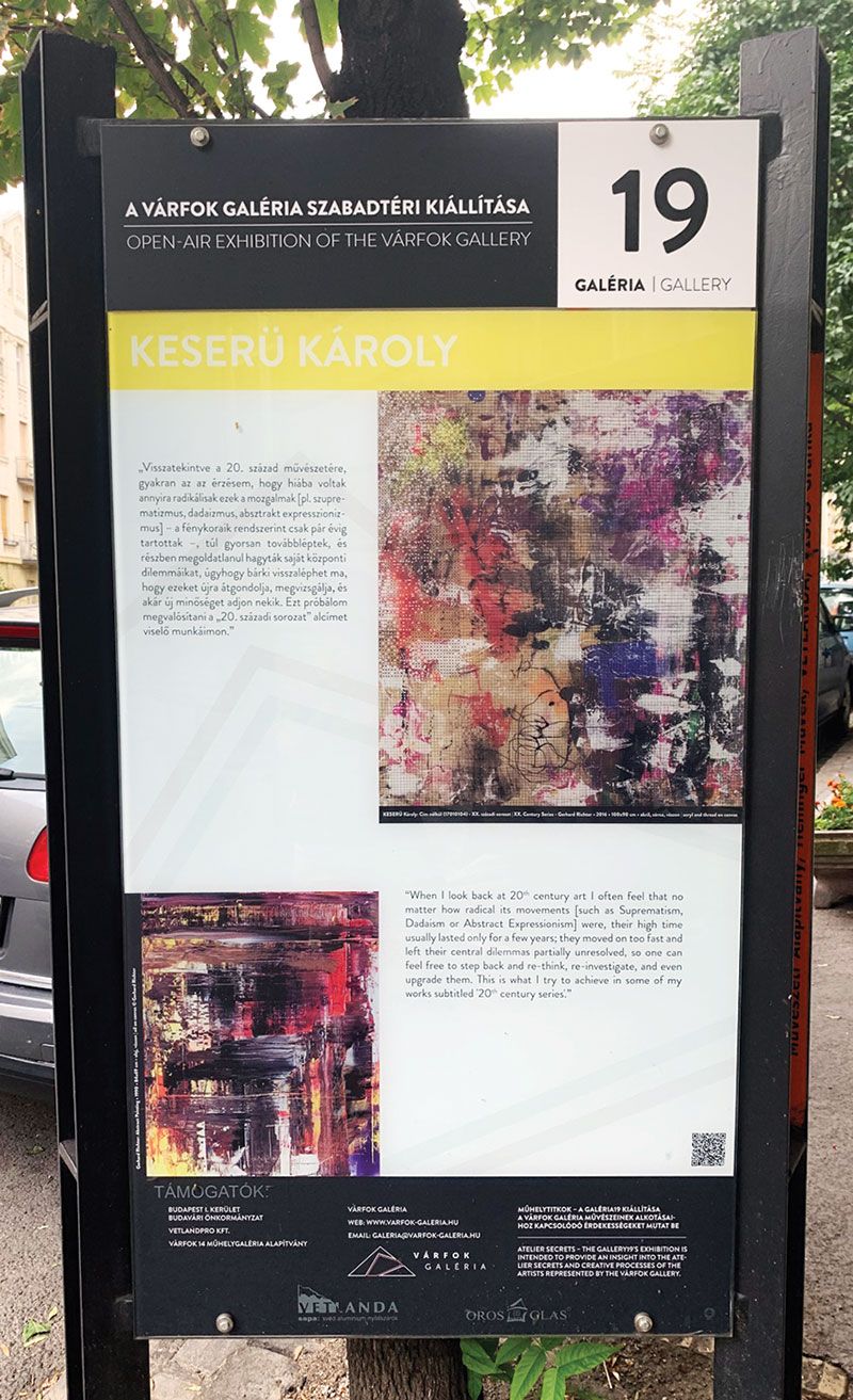 หลังจากนั้นเขาก็ได้ขยายห้องภาพอีกโดยเป็น Portal Gallery และจัดแสดงนิทรรศการเรื่องใหม่ทุกเดือน และ Garage Gallery โดยอนุญาตให้ศิลปินหน้าใหม่ได้มีโอกาสจัดแสดงนิทรรศการในโรงรถบนถนน Varfok หลังจากนั้นเขาก็จัดให้มี Open Air Exhibition นั่นคือ จัดแสดงนิทรรศการบนต้นไม้ 19 ต้นตามทางเท้าข้างถนนเลยทีเดียว ห้องภาพ 19 นี้มีข้อดีเหนือห้องภาพอื่นใดในโลกตรงที่ไม่มีเวลาปิดทำการ งานที่จัดแสดงจะอยู่ภายใต้กระจกหนา 3 ชั้นเพื่อป้องกันความเสียหายที่อาจเกิดกับชิ้นงานได้ ห้องภาพ 19 ริมถนนนี้ถือกำเนิดขึ้นจากแนวคิดของ Karoly Szaloky เจ้าของ Varfok Gallery เองโดยได้รับการสนับสนุนจากเทศบาลเป็นอย่างดี การเปลี่ยนชิ้นงานที่จัดแสดงภายในจะทำทุกๆ ครึ่งปีเพื่อให้นักผู้ชมได้ชื่นชมงานที่มีความหลากหลายขึ้นด้วย