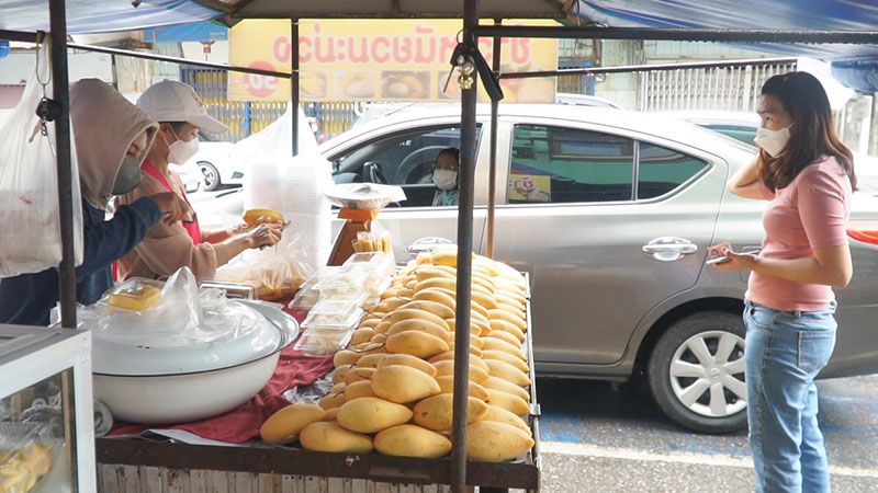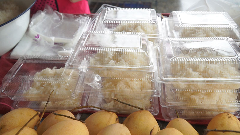 นางสาววาสนา แสงสว่าง แม่ค้าขายข้าวเหนียวมะม่วง เล่าว่า ดีใจที่มีกระแสอยากกินข้าวเหนียวมะม่วงตั้งแต่มีข่าวออกมาทำให้ร้านขายดีมากๆ โดยเมื่อวานวันที่ 17 เม.ย.65 ตนไม่มีเวลาพักกินข้าวเลย โดยตนเริ่มขายตั้งแต่ 8 โมงเช้าขายจนถึงเย็น ปกติตนเตรียมมะม่วงมาขายวันละ 200 กิโลกรัม ข้าวเหนียว 30 กิโลกรัม โดยมะม่วงจะเป็นมะม่วงน้ำดอกไม้เฉลี่ยตกวันละ 300 กล่อง กล่องละ 50 บาท แต่เมื่อวานพอบ่ายโมงกว่าๆปรากฏมีคนมาซื้อทั้งหน้าร้านและเดลิเวอรี่หมดเกลี้ยง ร้านขายดีมาก มาวันนี้กลัวเสียลูกค้าที่ตั้งใจมาซื้อ เพิ่มของขาย แม้วันนี้มีฝนตกพรำๆ