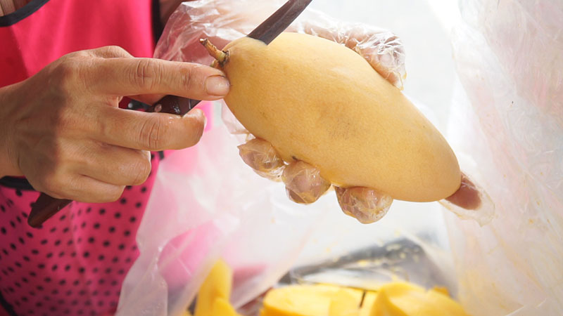ตั้งแต่เช้าเปิดร้านมีลูกค้าก็มาสั่งขายหมดไปแล้ว เกือบ 200 กิโลกรัม วันนี้ตนเลยเพิ่มมะม่วงอีกเท่า พร้อมเพิ่มข้าวเหนียว น้ำกะทิคาดว่าหน้าจะเพียงพอ ของคุณน้องมิลลิ ที่สร้างกระแสและหลายๆร้านก็ขายดีเหมือนกันหมด. 012