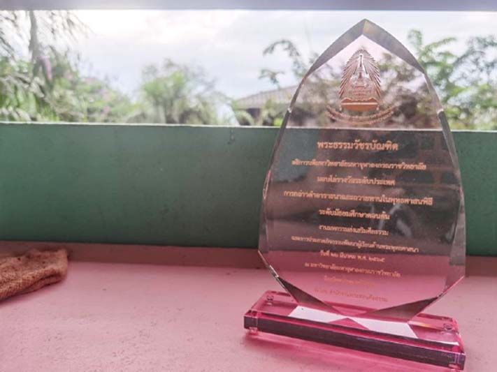 โดยต้นเดือนเมษายน 2565 ตนเองได้มอบหมายให้ครูผู้ฝึกสอน และตัวแทนนักเรียน เข้ารับมอบโล่ระดับประเทศ มอบโดย พระธรรมวัชรบัณฑิต อธิการบดีมหาวิทยาลัยมหาจุฬาลงกรณราชวิทยาลัย ณ มหาวิทยาลัยมหาจุฬาลงกรณราชวิทยาลัย จังหวัดพระนครศรีอยุธยา