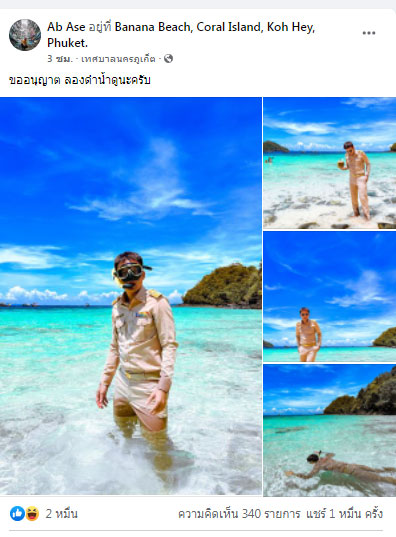 กลายเป็นเรื่องฮือฮาอีกครั้ง เมื่อคุณครูรายหนึ่งได้โพสต์ภาพขณะที่ไปเที่ยวทะเล และแต่งกายเต็มยศ พร้อมโชว์ดำน้ำในชุดข้าราชการครู พร้อมโพสต์ข้อความระบุว่า “ขออนุญาต ลองดำน้ำดูนะครับ”