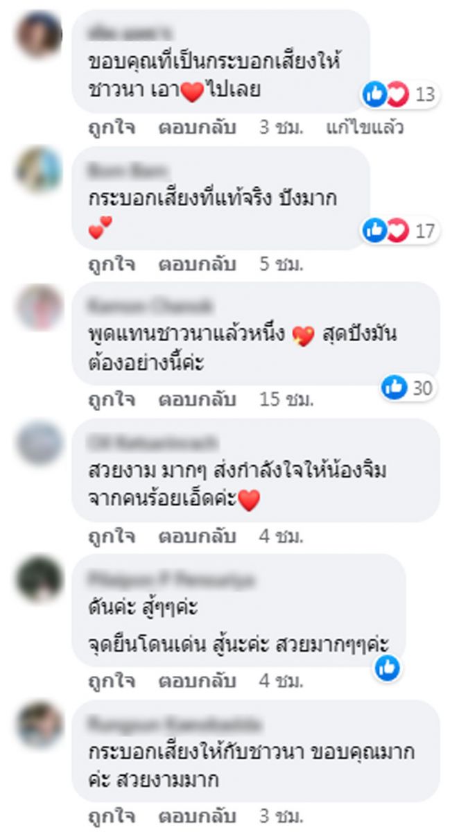 โดยชุดนี้ยังได้รับคำชื่นชมเป็นจำนวนมากที่ออกมาใช้เวทีพูดแทนเสียงชาวนา