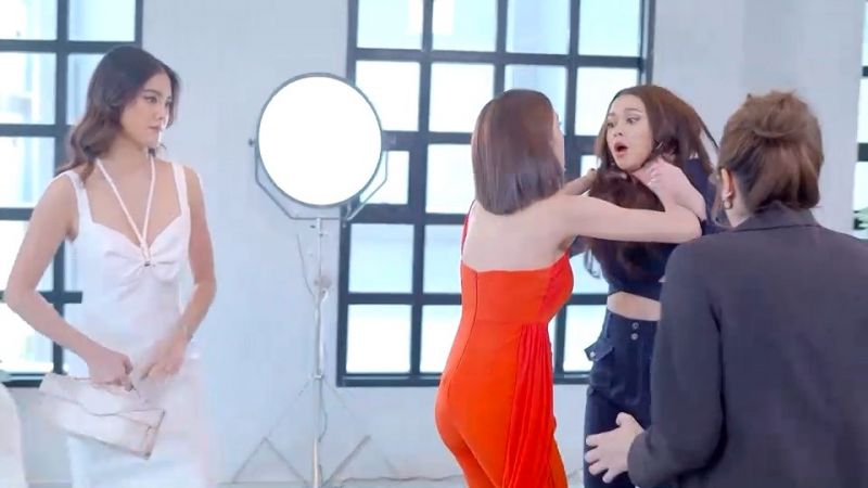 และวันนี้เราก็มีฉากแซ่บ ฉากปะทะเชือดเฉือนมาฝาก โดยเป็นตอนที่พิมพ์ผกา(แพร์ พิชชาภา พันธุมจินดา) กับพิมพ์อัปสร(โยเกิร์ต ณัฐฐชาช์ บุญประชม) โมโหที่ปาริฉัตร(แพทริเซีย ธัญชนก กู๊ด) ไปเกี่ยวพันกับตฤณ(ท็อป จรณ โสรัตน์) คิดว่าปาริฉัตรจะยอมเป็นเมียน้อยตฤณ ก็เลยบุกไปตบปาริฉัตรกลางงานไลฟ์สด ช่วยกันทั้งพี่ทั้งน้อง ดีที่สุพินดา(มิ้น นวินดา เบอร์ต๊อดตี้) ไปช่วยปาริฉัตรได้ทัน แต่คิ้วก็แตกเป็นแผลเลือดออก