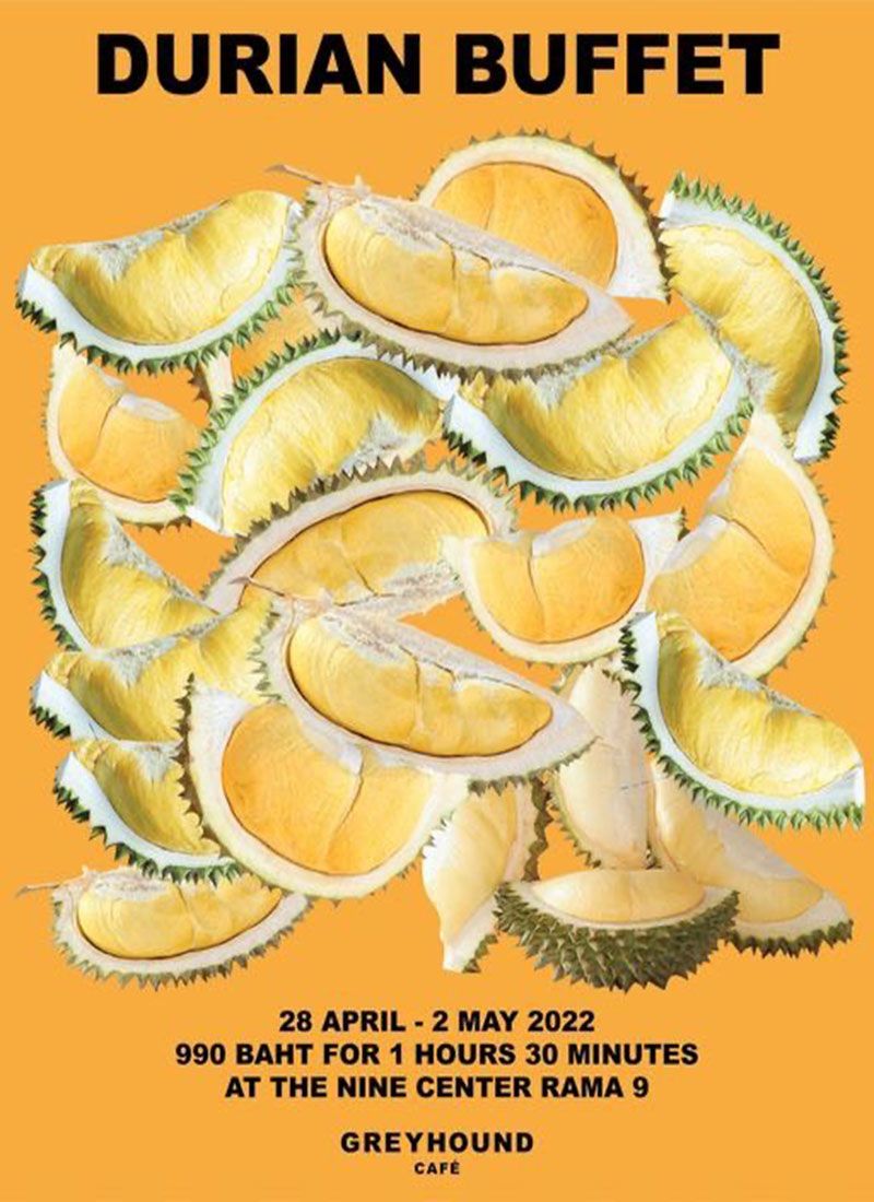 แล้วพบกัน! ชาวนิ้วทองกับบุฟเฟ่ต์ทุเรียน Greyhound Café วันที่ 28 เม.ย. – 2 พ.ค. ณ ลานไนน์ สแควร์ ศูนย์การค้าเดอะไนน์ เซ็นเตอร์ พระราม 9 ราคาบัตร 990 บาท