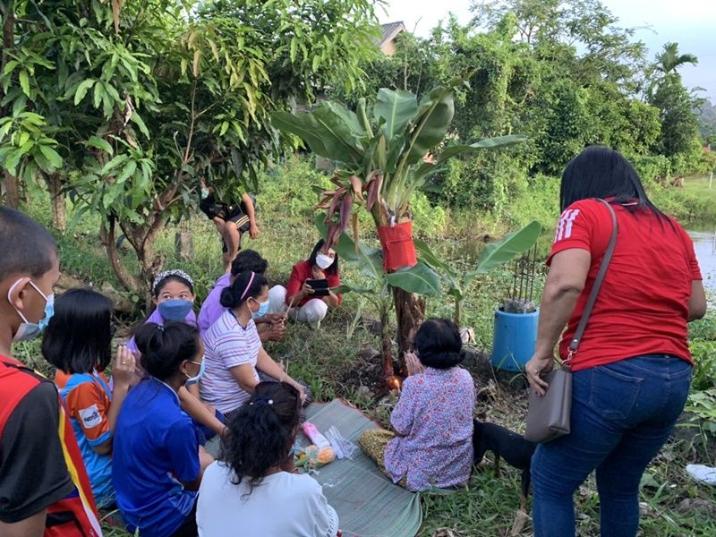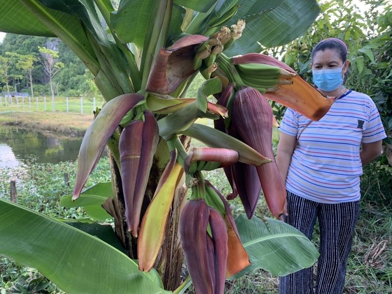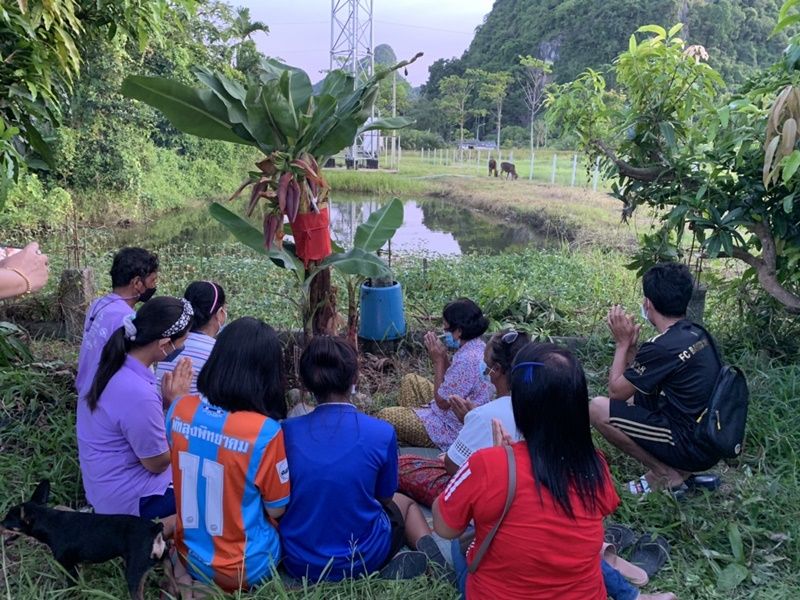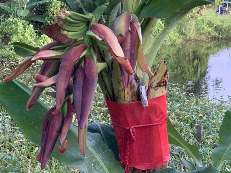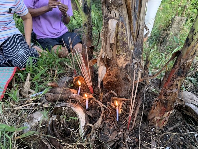 วันนี้ (25 เม.ย.65) ที่บริเวณบ้านเลขที่ 100 ม.5 บ้านเขาแดง ต.พญาขัน อ.เมือง จ.พัทลุง ได้มีชาวบ้านนำธูปเทียน ผ้าแดงมาไหว้ขอโชคขอลาภจากต้นกล้วยประหลาด ซึ่งออกปลีกล้วยมา 4 ปลี ซึ่งเป็นเรื่องแปลกและหาดูยาก โดยบางคนเอาแป้งมาลูบบริเวณต้นกล้วยเพื่อส่องหาเลขเด็ดเพราะไม่เคยเห็นมาก่อน