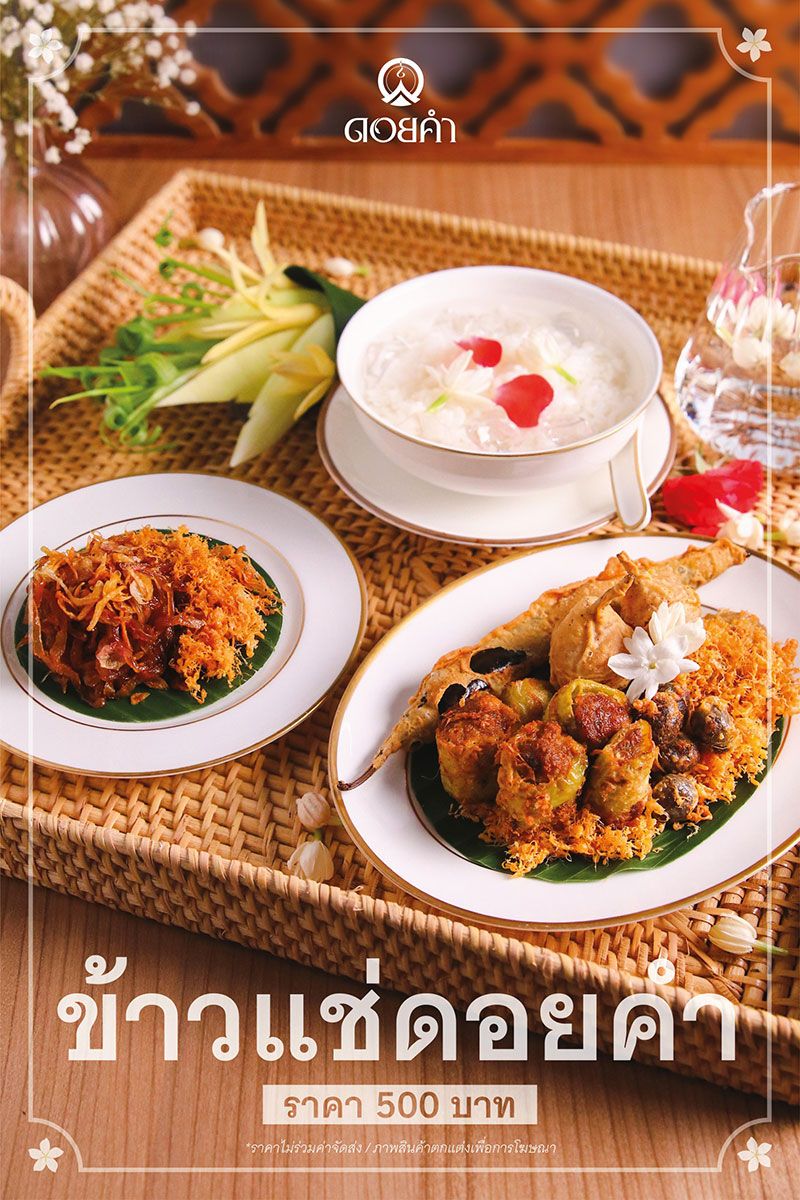 ข้าวแช่ดอยคำ ราคาชุดละ 500 บาท รอบจำหน่าย วันที่ 28 เมษายน 2565 (ปิดรับออเดอร์ 27 เมษายน 2565 เวลา 16.00 น.) และอีกรอบในวันที่ 27 พฤษภาคม 2565 (ปิดรับออเดอร์ 26 พฤษภาคม 2565 เวลา 16.00 น.) ค่าจัดส่งคิดตามระยะทาง หรือสามารถมารับที่ ร้านดอยคำ สาขาราชเทวี สอบถามได้ที่ คุณโจ้ โทร.063 905 5940 หรือ คุณนุ้ย โทร.065 940 2461